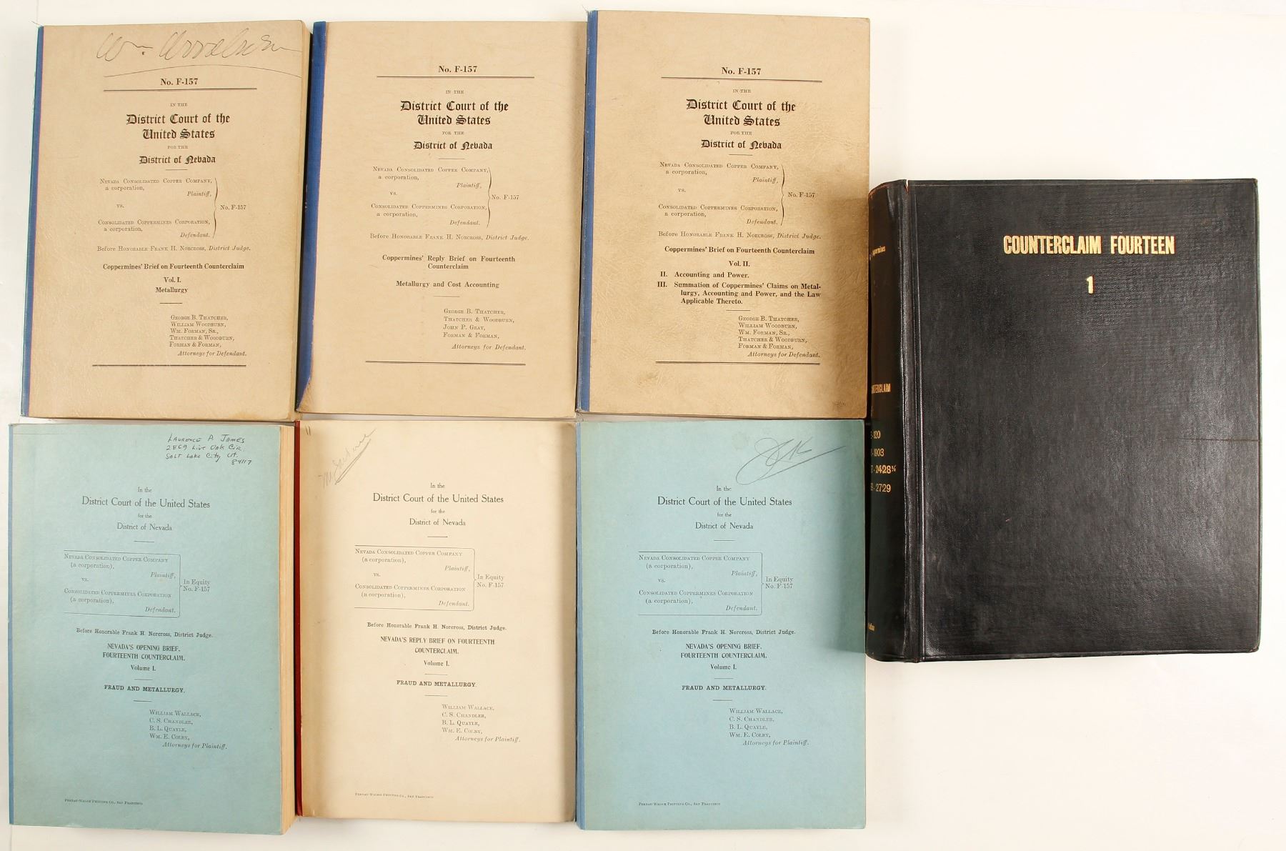 Rare 7 volumes of legal counterclaims briefs in US District Court in this suit.