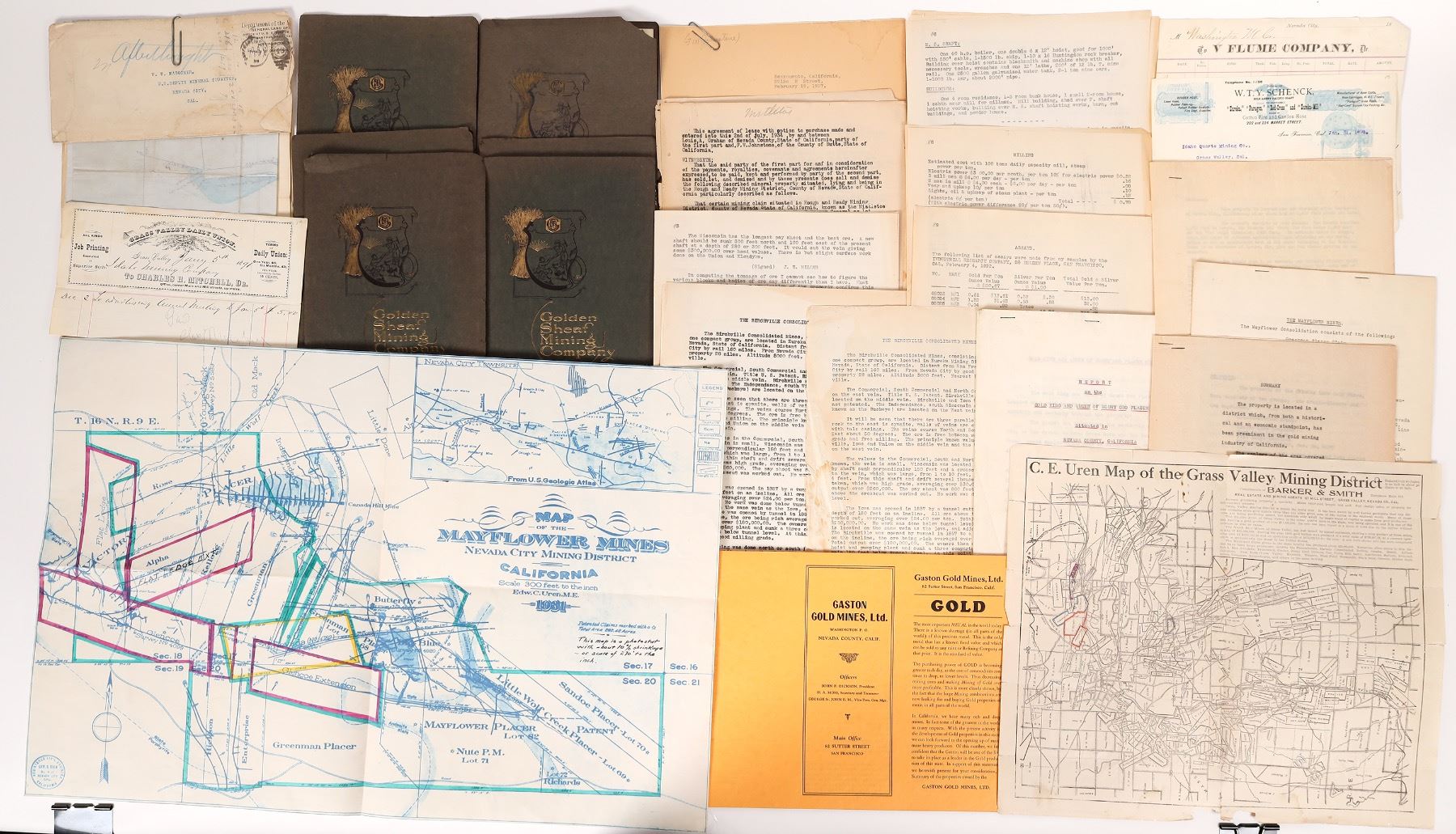 Reports on a few of the mines in the Nevada City area including The Old King & Queen of Mount Oro Placer Mines, The Gracie Quartz Mine, The Empire Placer Mine and the Mayflower Mines, complete with 16"x 24" map, among others. There are also new brochures for Gaston Gold mines Ltd. of Nevada County and more. Please see photos for more details. Nevada City California