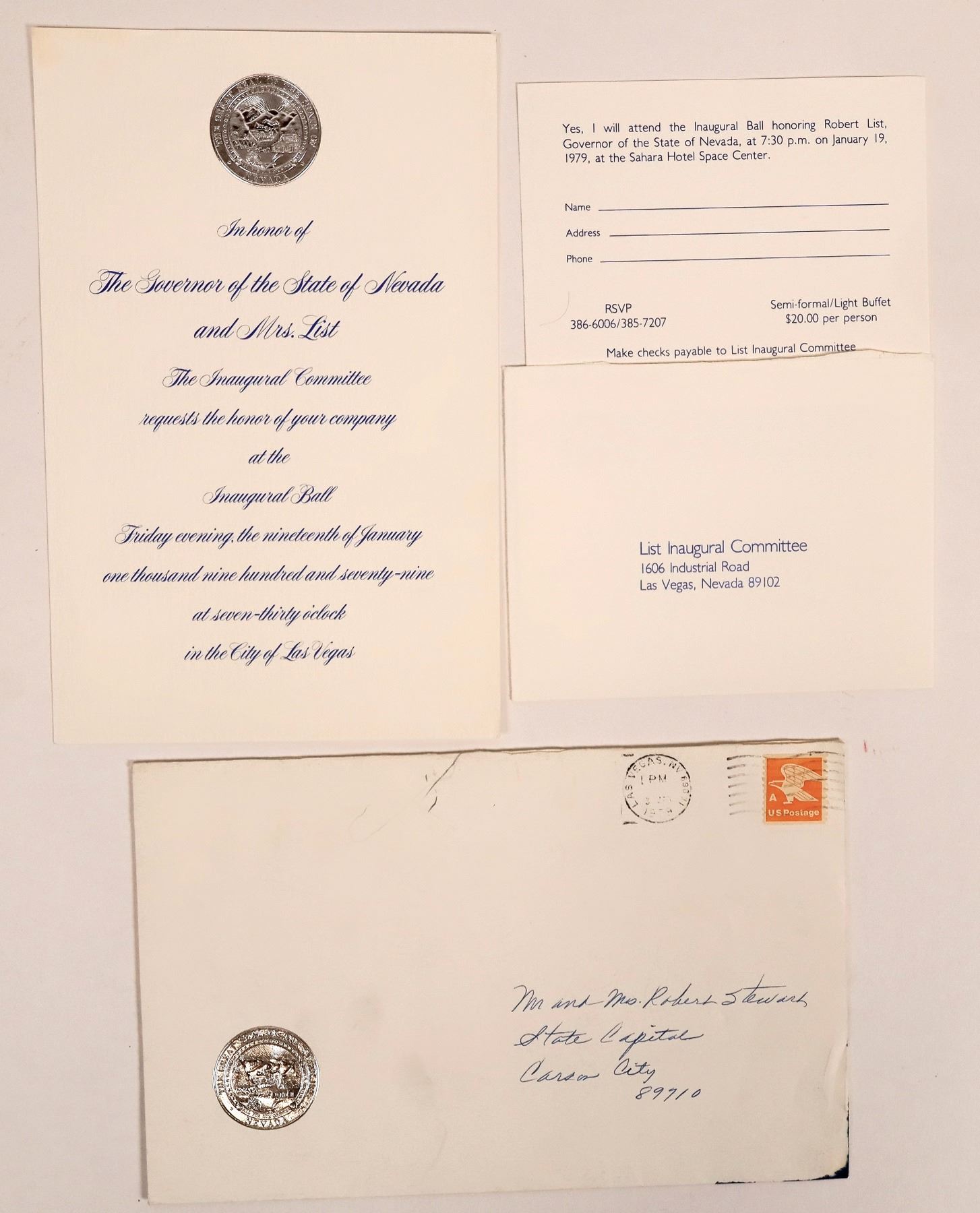 Nevada Governor Robert List Inaugural Ball Invitation, 1979.