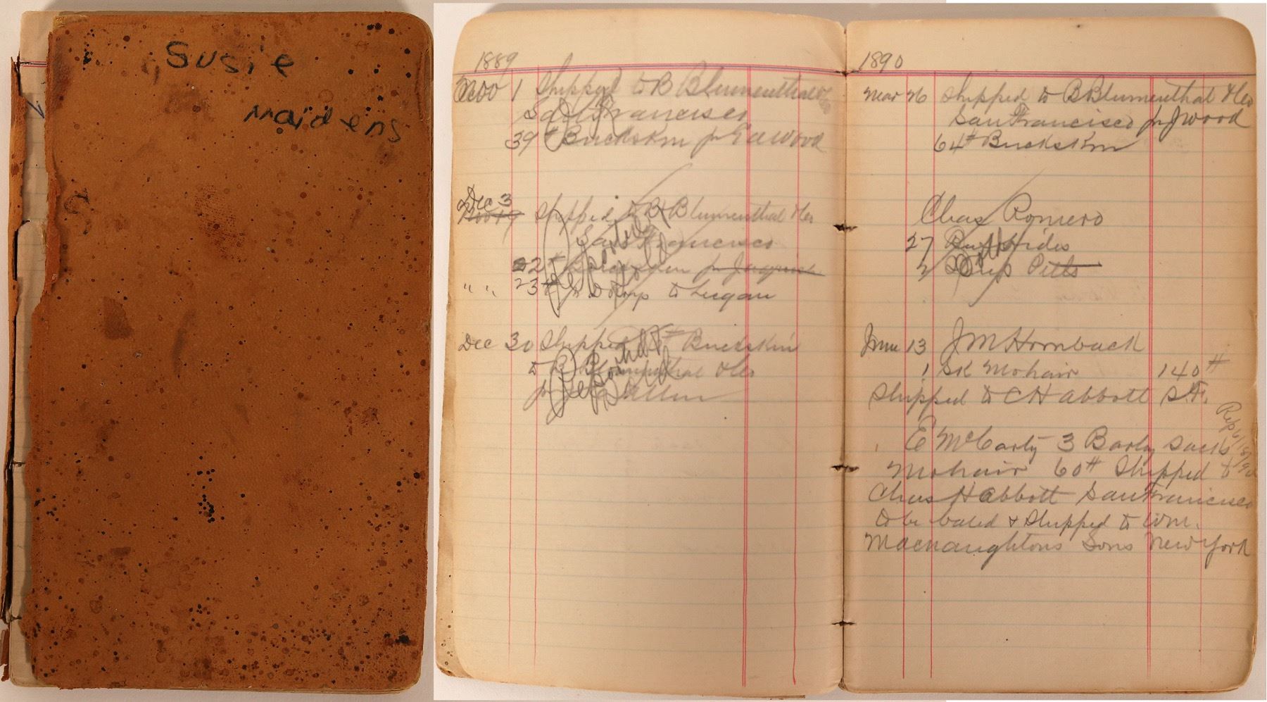 1892 record of shipping eggs, wool, alfalfa, etc. Shipped to Wood Spring, George C Turner Spring, Boca Mill Company, AE Murdock, Flanigan Warehouse, etc. My favorite is Hatch brothers of Virginia City. Shipped 90 dozen eggs one day. The next day shipped an additional 120 dozen eggs! Shipped 7000 pounds of flour to DW Earl one day. Includes shippers mark - which was used by shippers to make it easier to track their packages. Includes shipping information, such as DW Earl & Co. and a rare railroad. Cost is included on some of these. Much of this is lined through (probably when completed). Great historical resource. Fun and challenging to get through. Small size 6x4".