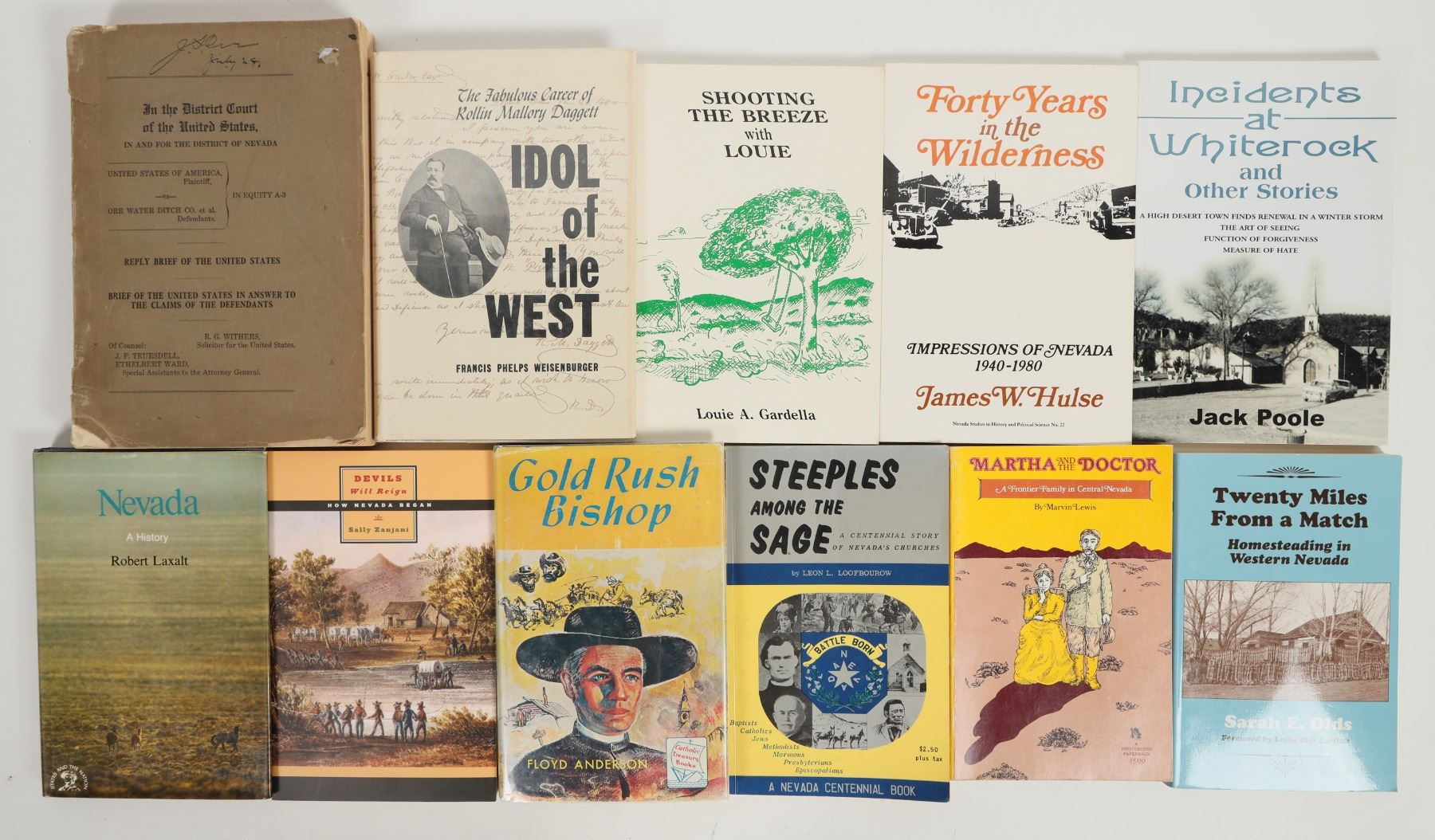 Group of 10 books on Nevada history and culture, published 1962-2007. Explores topics of homesteading, life on the frontier, and the founding of the state. See photo for details.
