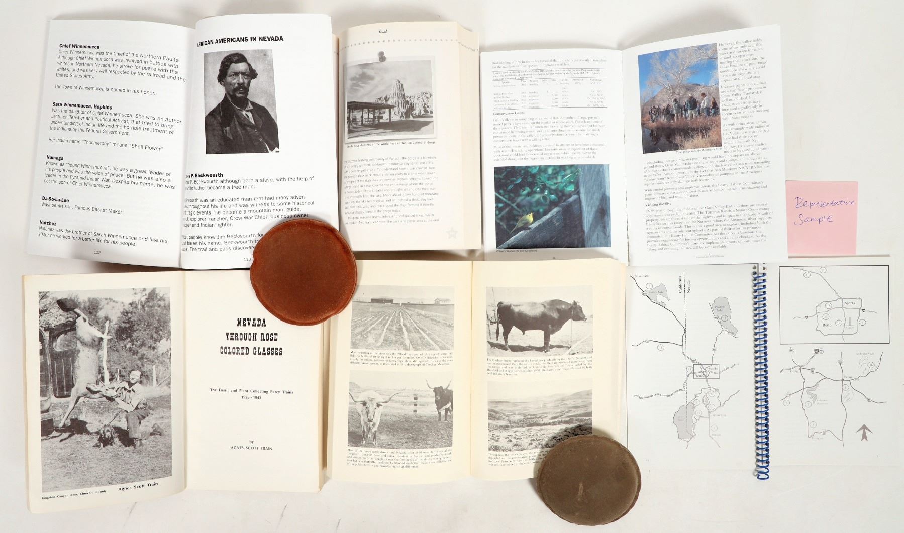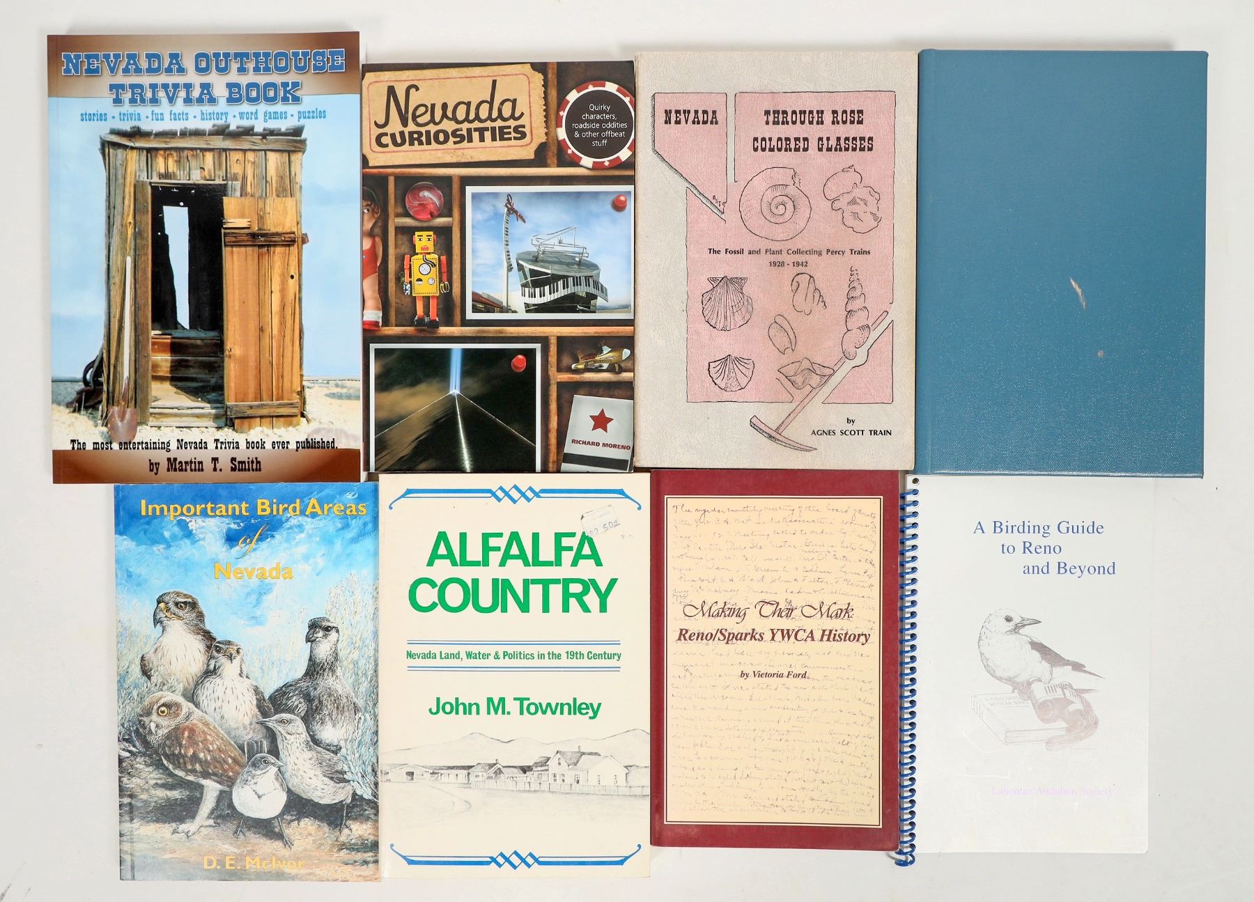 Group of 8 books about the local history, culture, and ecosystems of Nevada. Published 1977-2009. Includes oral history records, birding guides, curiosity/trivia books, and others. See photo for details.