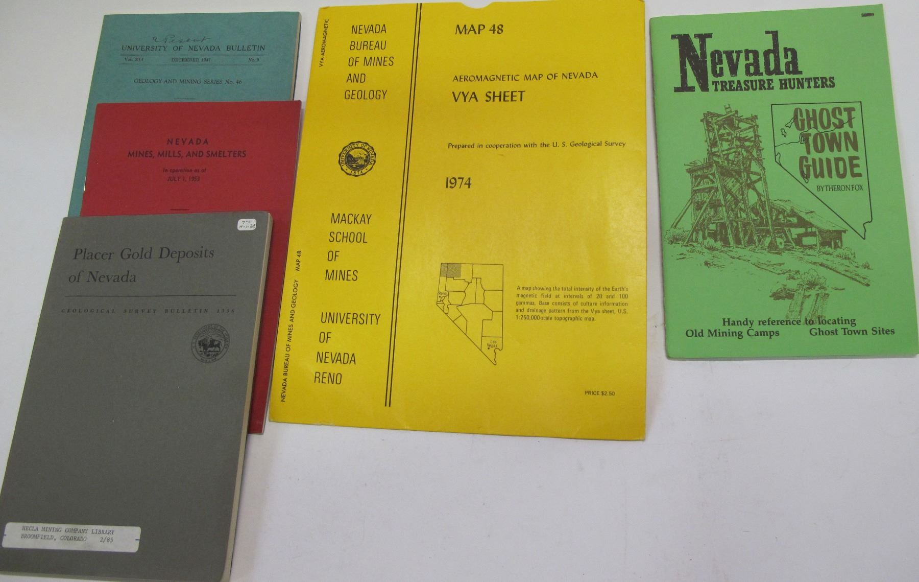 13 Nevada mining publications from Dept. of Interior, Nevada Bureau of Mines and Geology, Nevada Treasure Hunters by Fox and more. State: Nevada City: Date: