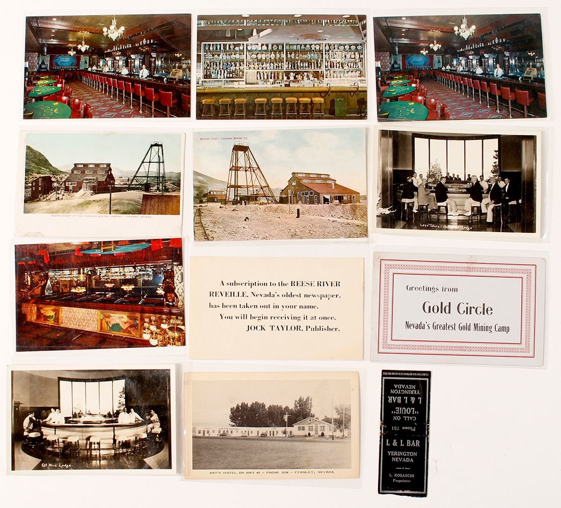 Lot of 12 including greetings from Gold Circle Nevada's Greatest Gold Mining Camp, RPCs of the Club Cal Neva Lake Tahoe, Golden Nugget Las Vegas, Mizpah Shaft Tonopah, and Art's Motel in Fernley. City: State: Nevada Date: ID# 44612