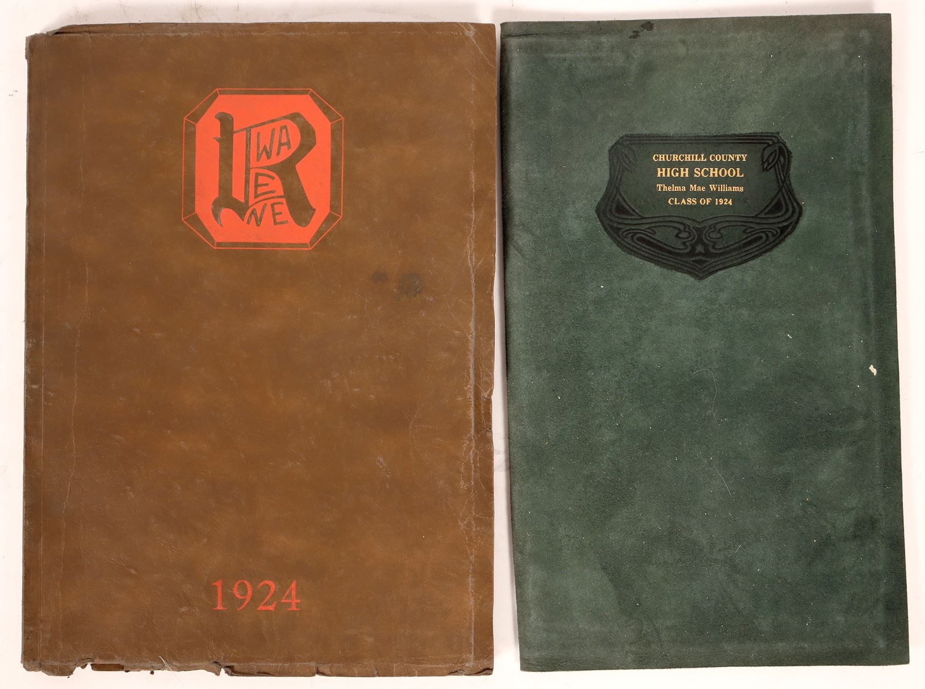 2 1924 Nevada yearbooks, Churchill County HS, Re Wa Ne from Reno HS.