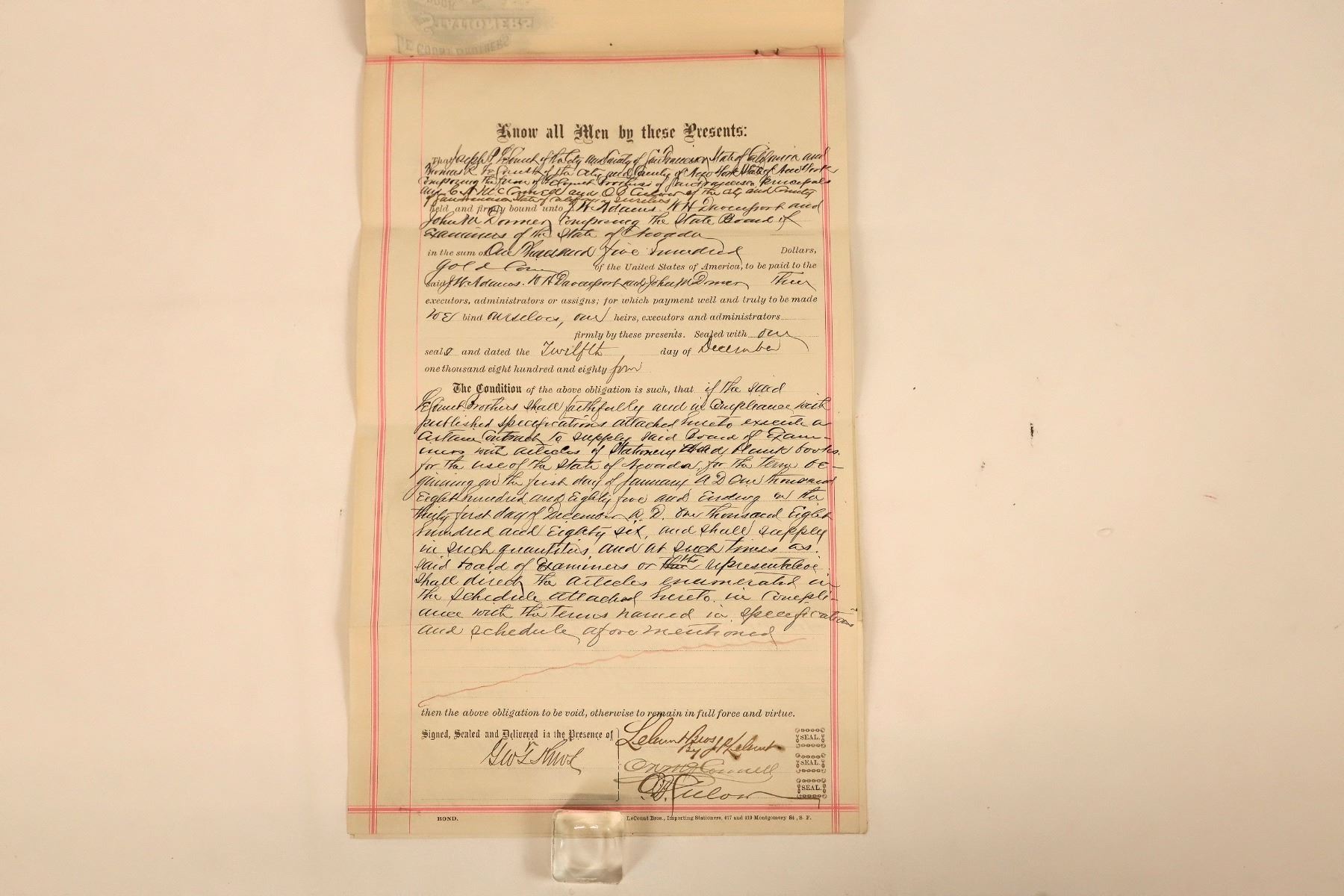 1884 Nevada state proposal and contract for printing supplies-paper, envelopes, etc.