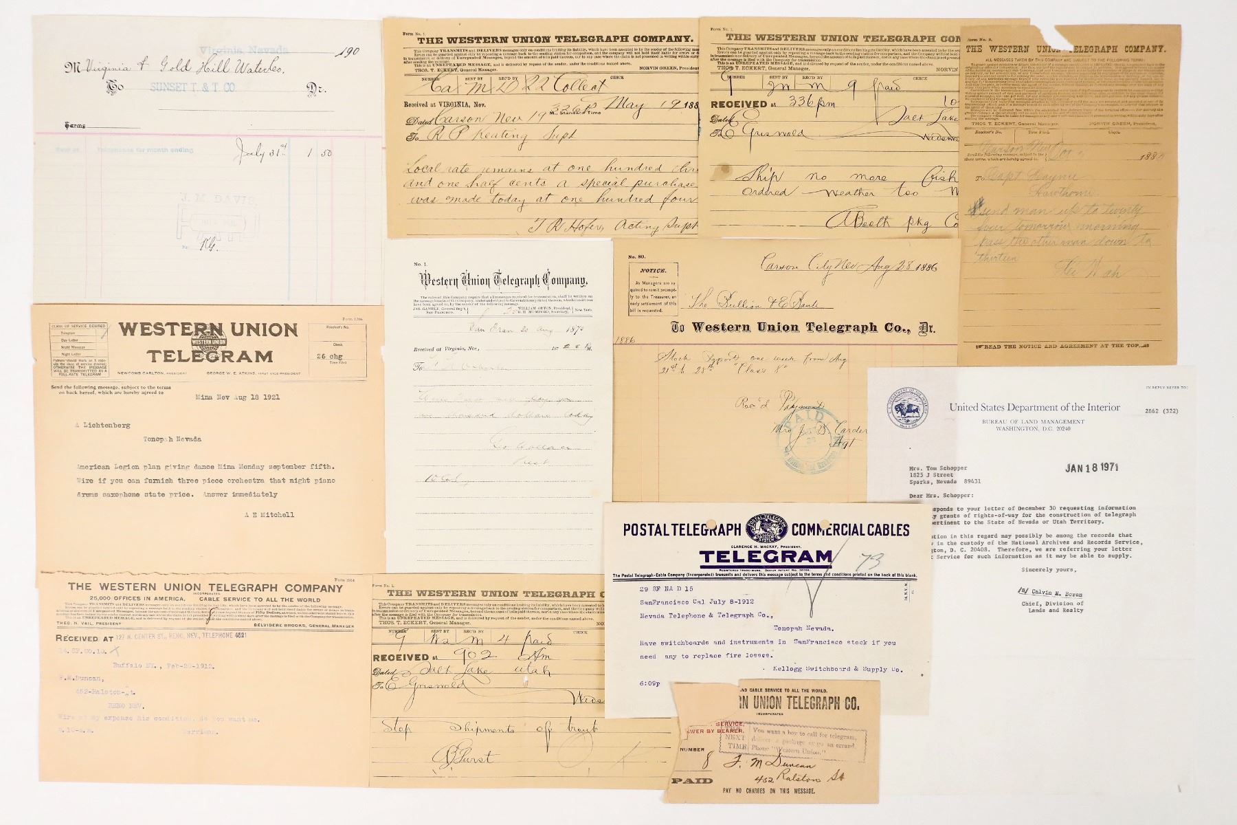 9 c. 1870-1971, mostly older, Nevada Western Union telegraphs. Reno, Carson City, Virginia, Tonopah, Wadsworth, Sparks, Hawthorne.