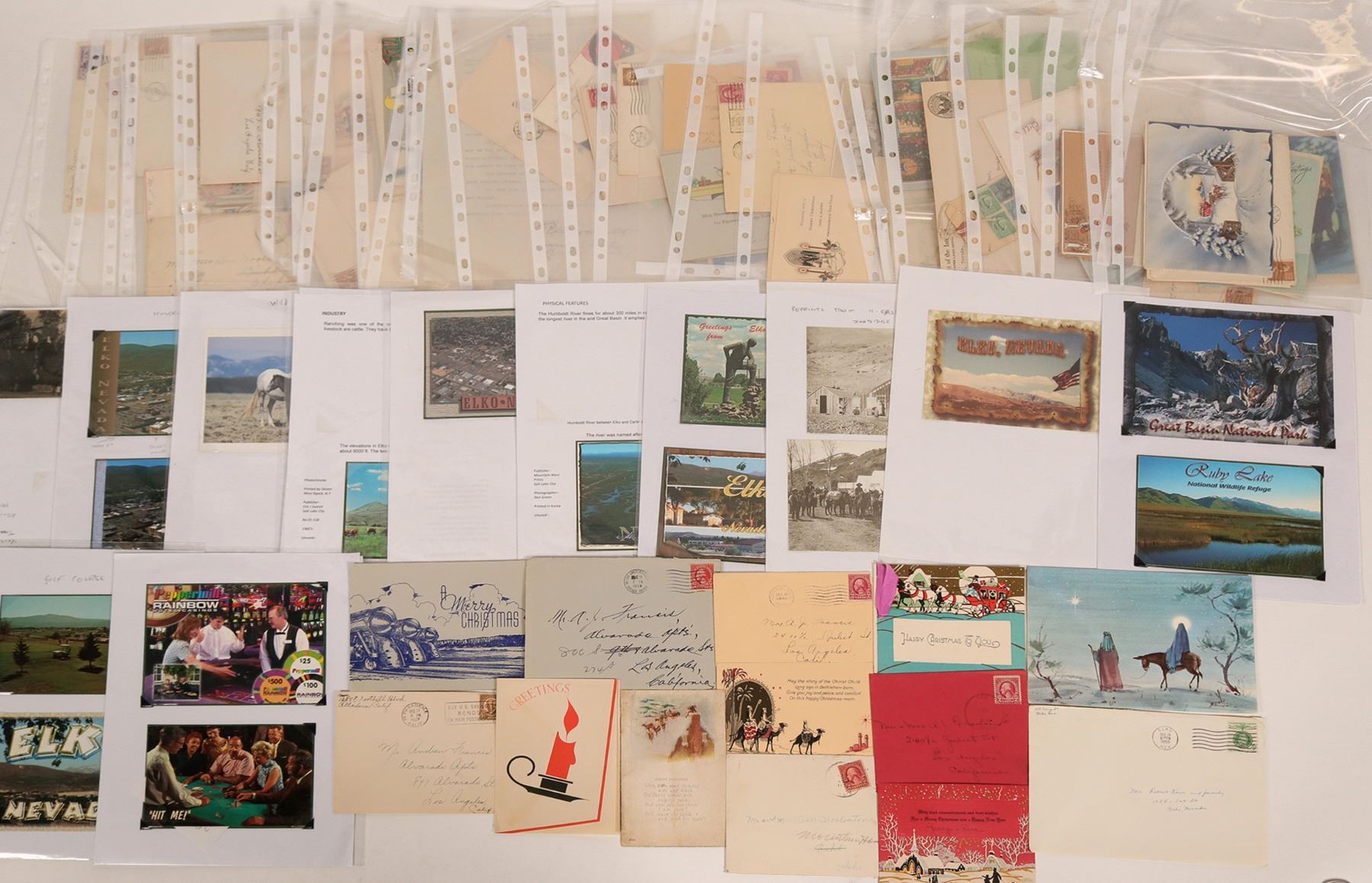 Lot of ~90. Nevada includes: Potts (from the Potts family) Goldfield, Carlin, Fernley, Elko Christmas cards, Lee, Reno University Station, Montello, Sparks, Eureka, Manhattan Reno & Mina, Odgen & San Fran., etc.. Non-Nevada are mostly 1930's Christmas. Some Christmas seals. Please inspect.