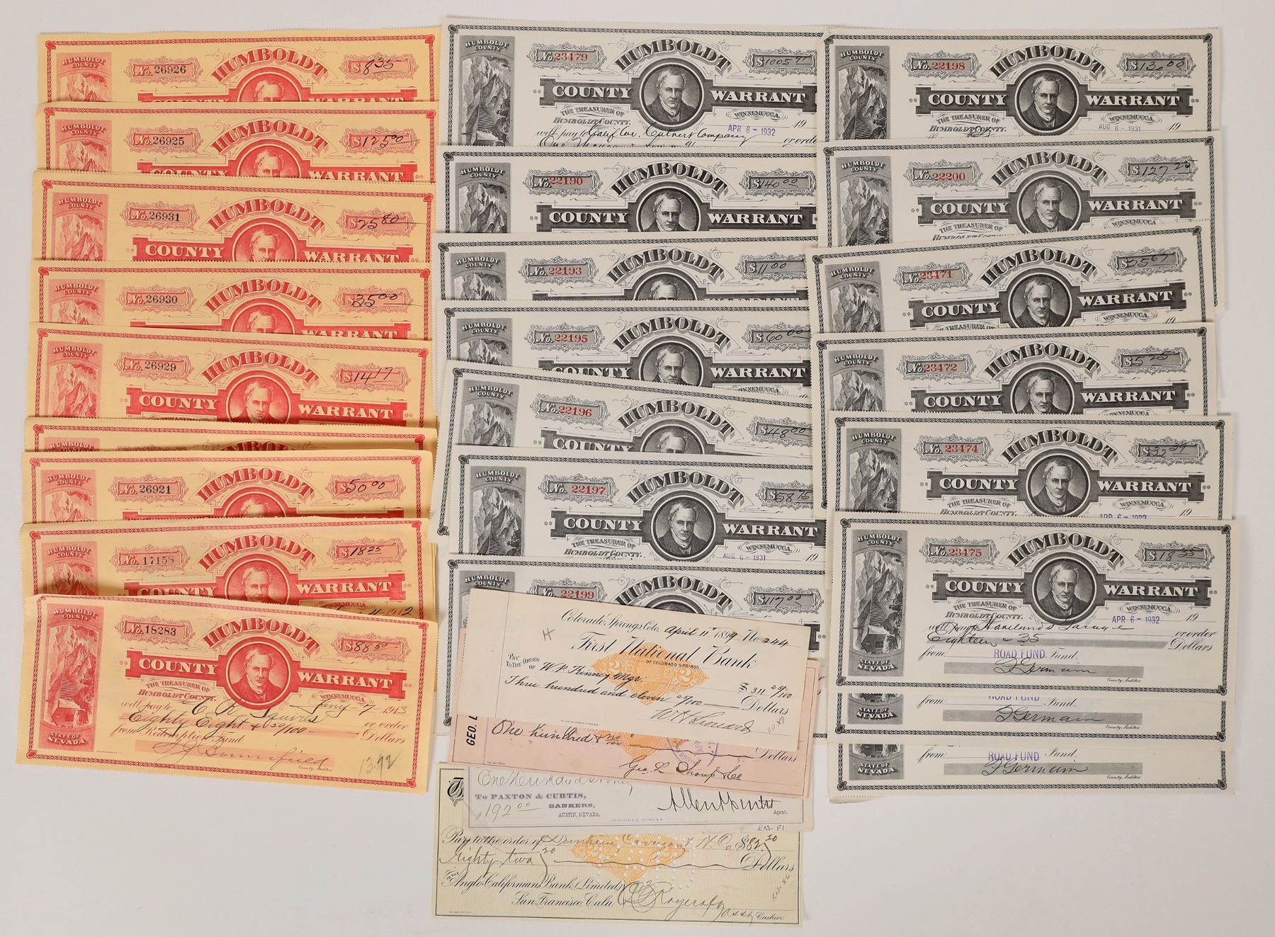 About 27 Nevada and Western checks, c. 1887-1932. Mostly Humboldt County plus others.