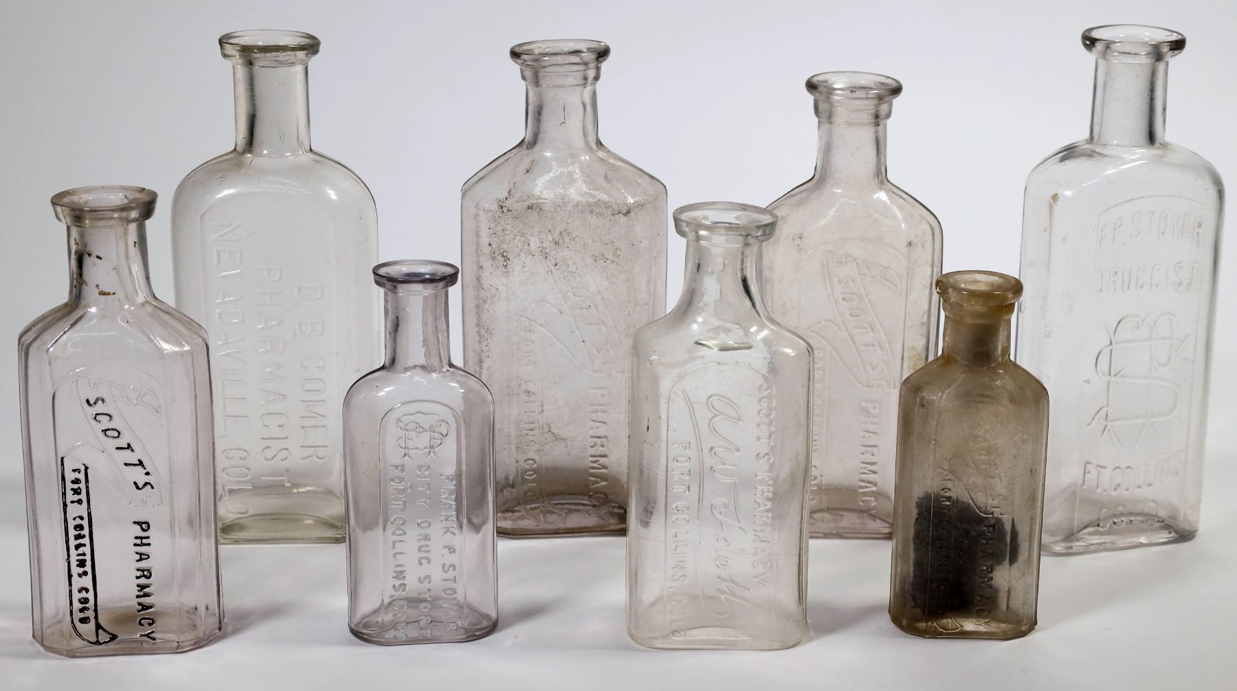 3. SCOTT'S PHARMACY/A.W.SCOTT/FORT COLLINS, COLO. 4 1/8". Bottle has 1" subsurface stress crack on the front shoulder.