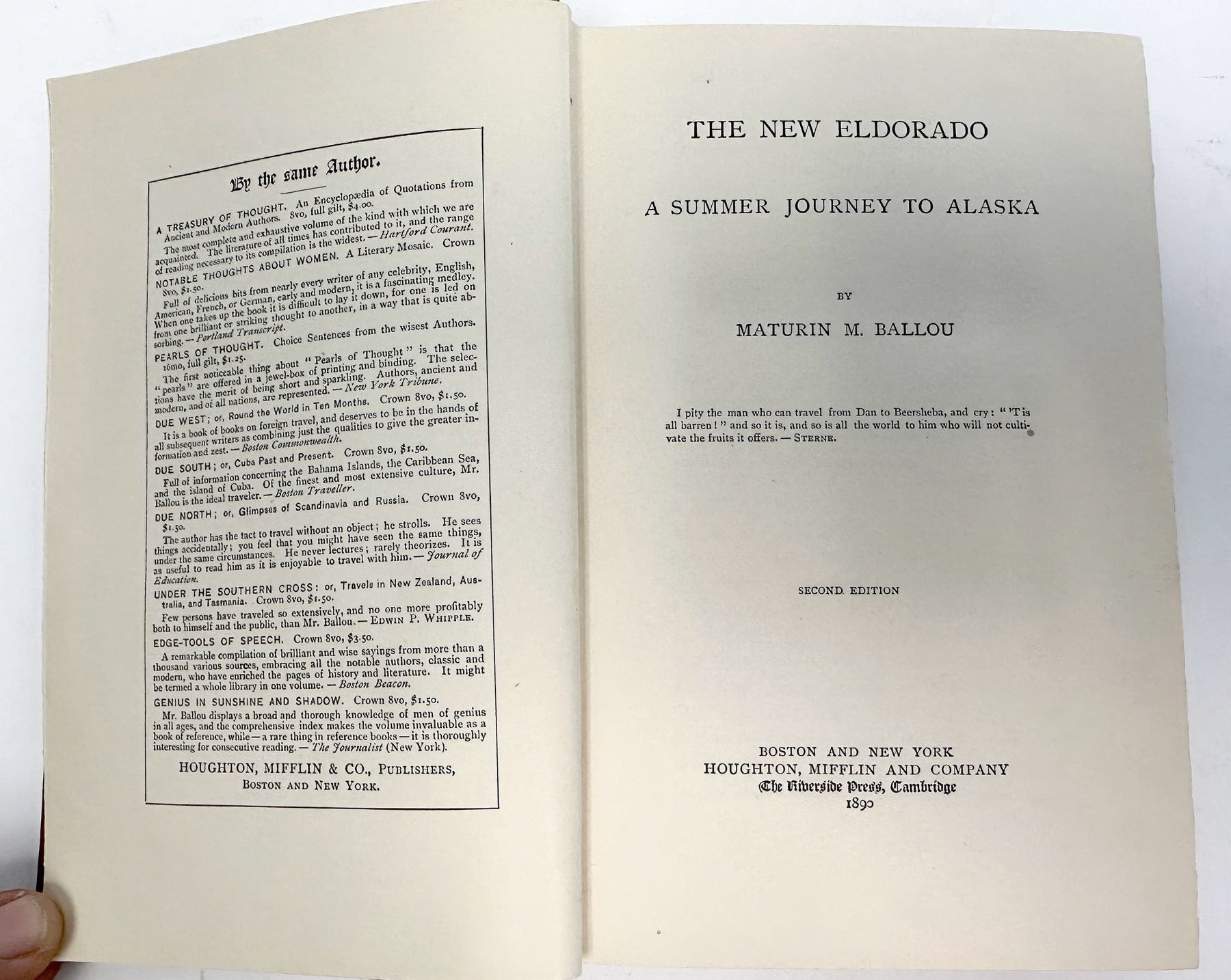 The New Eldorado: A Summer Journey to Alaska by Maturin M. Ballou, 2nd edition, 1890. Houghton, Mifflin and Company. This book is from the pre-Nome gold rush. Franklin Collection. Alaska Franklin Collection