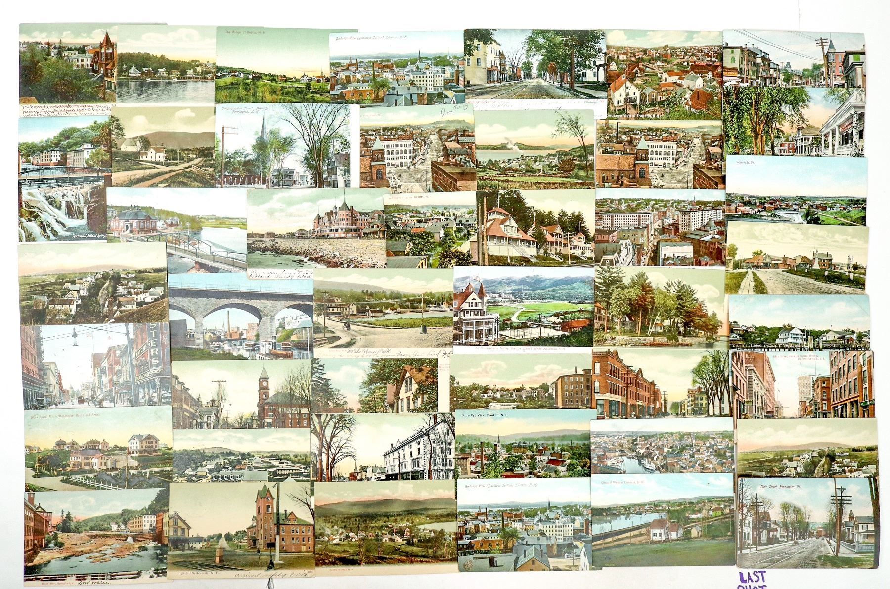 45 New England postcards. c. 1906-08 chromolitho. 30 New Hampshire, 9 Rhode Island, 6 Vermont. No dupes.