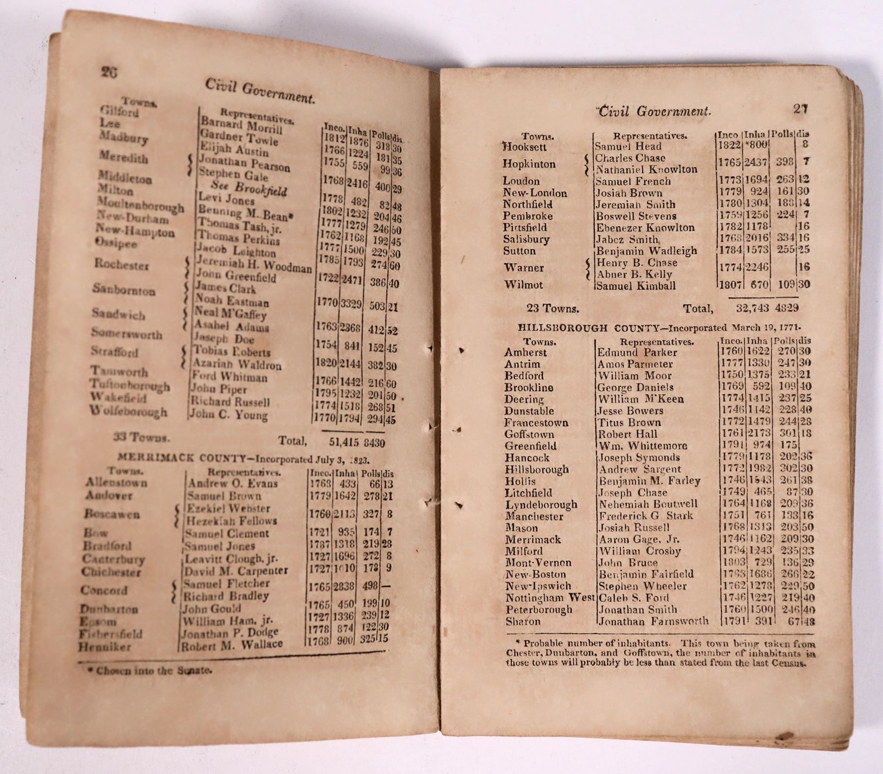 11 volumes of New Hampshire Annual Register. 1811-missing cover, 1815-spine damage, 1819, 1920-spine damage, 1821-spine damage, 1822-spine damage, 1825, 1835, 1842, 1844, 1847.