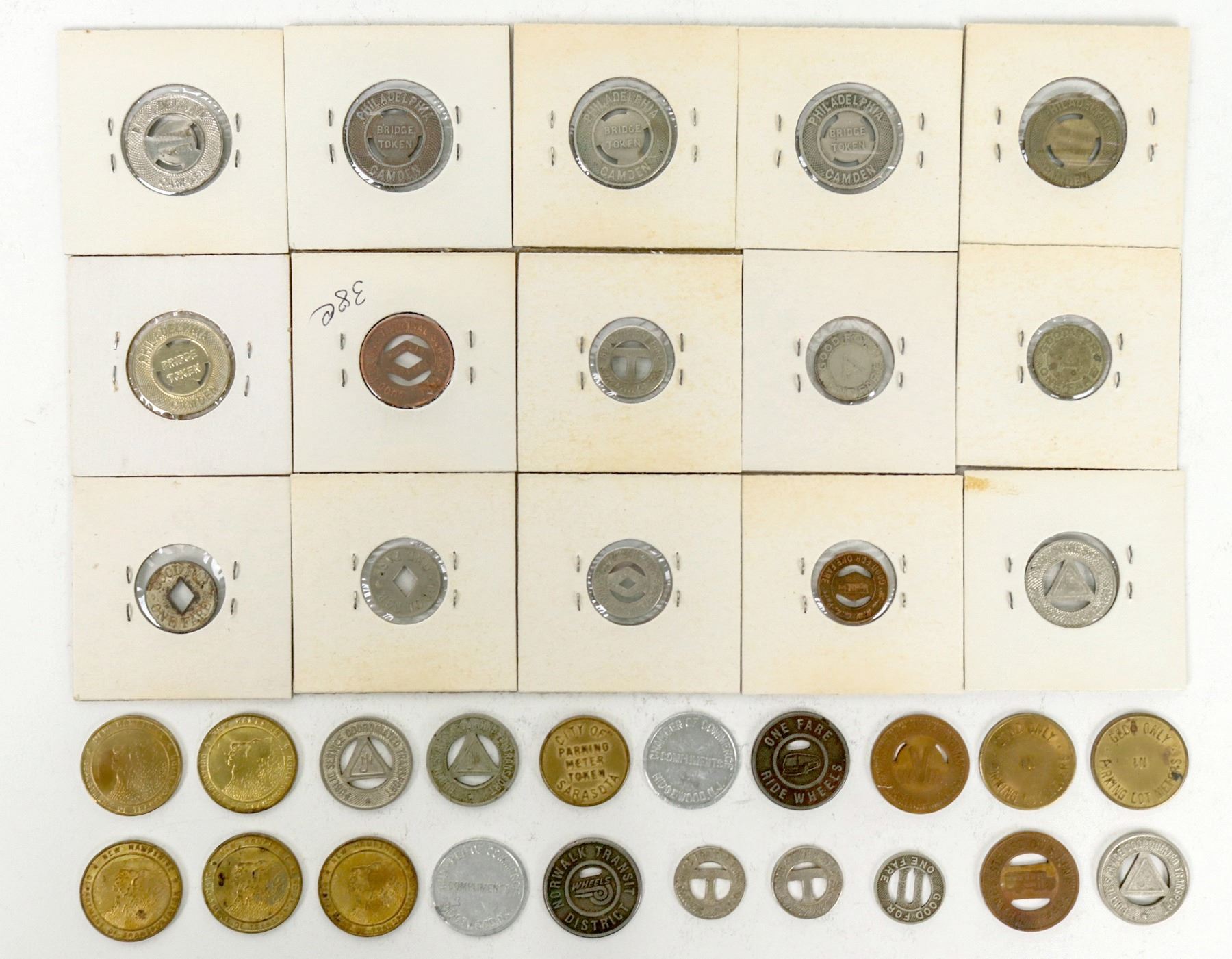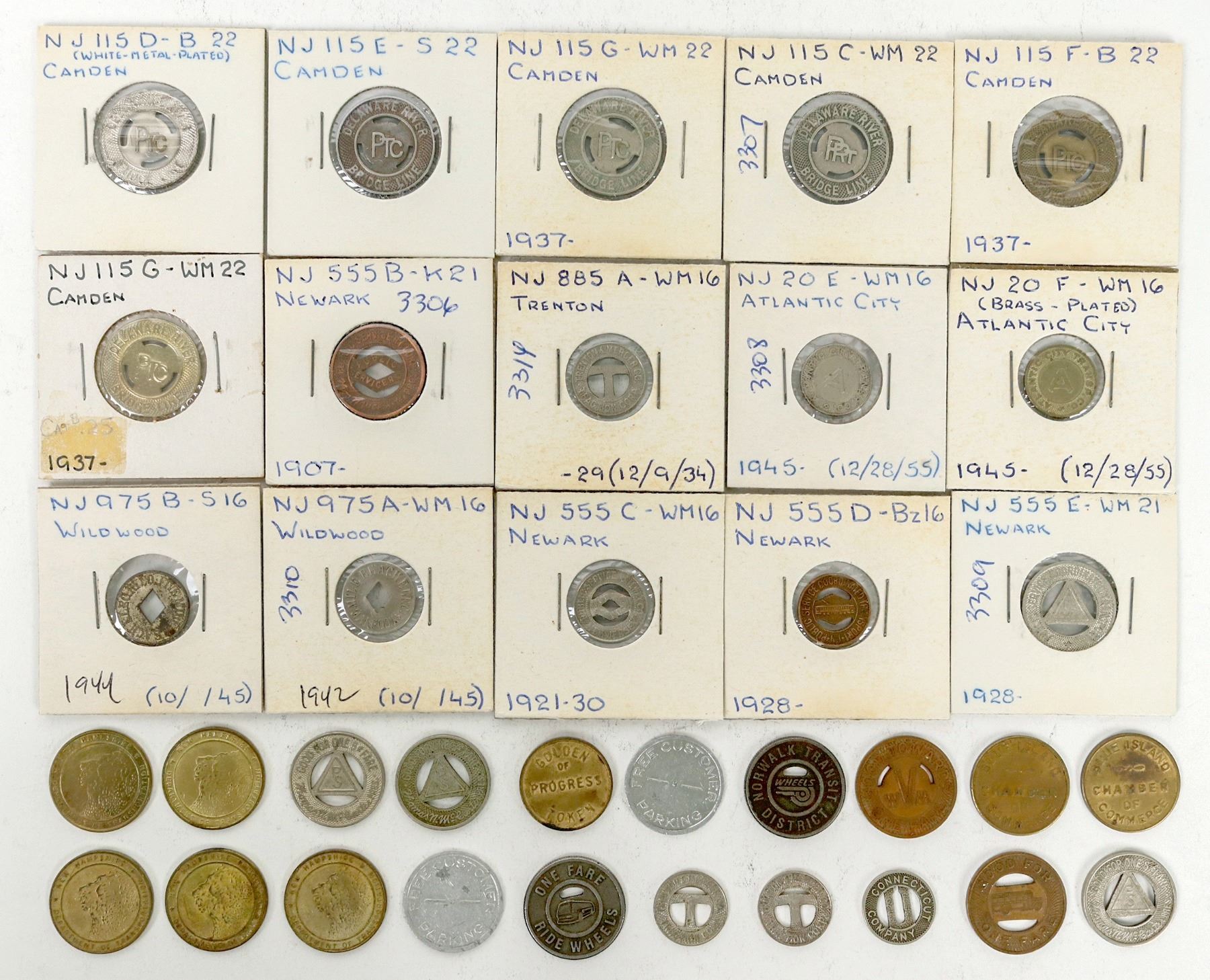 Group of 35 transportation tokens from various New Jersey companies. See photo for details.