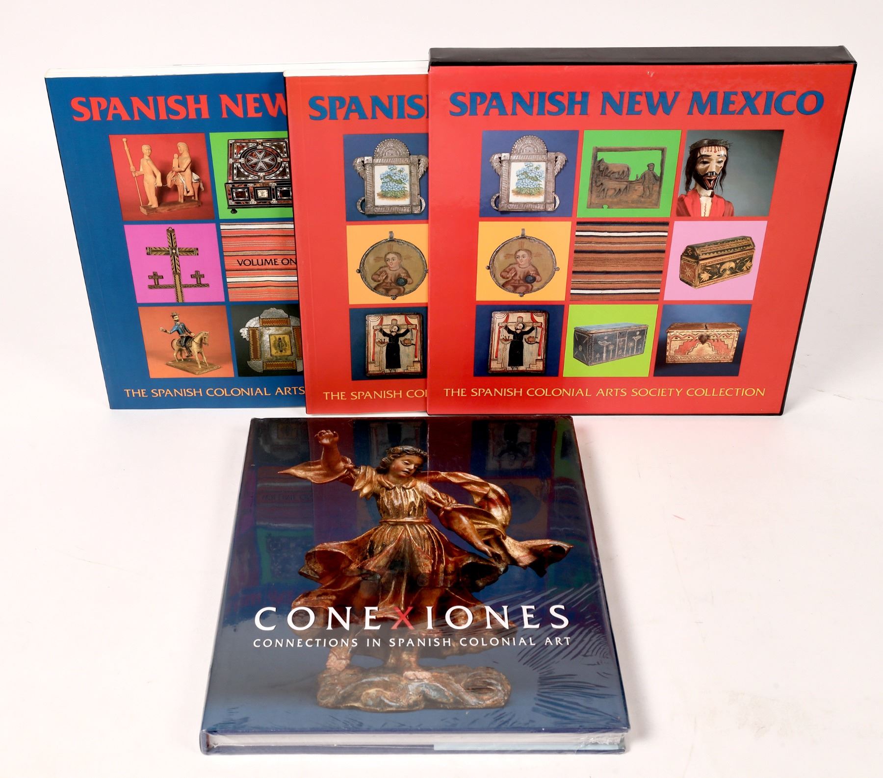 3 nicely illustrated New Mexico and Spanish art books. Conexiones, Connections in Spanish Colonial Art by Padilla, in unopened plastic wrap. 2 volumes of Spanish New Mexico by The Spanish Arts Society Collection, in binder. New Mexico Gary Bracken Collection