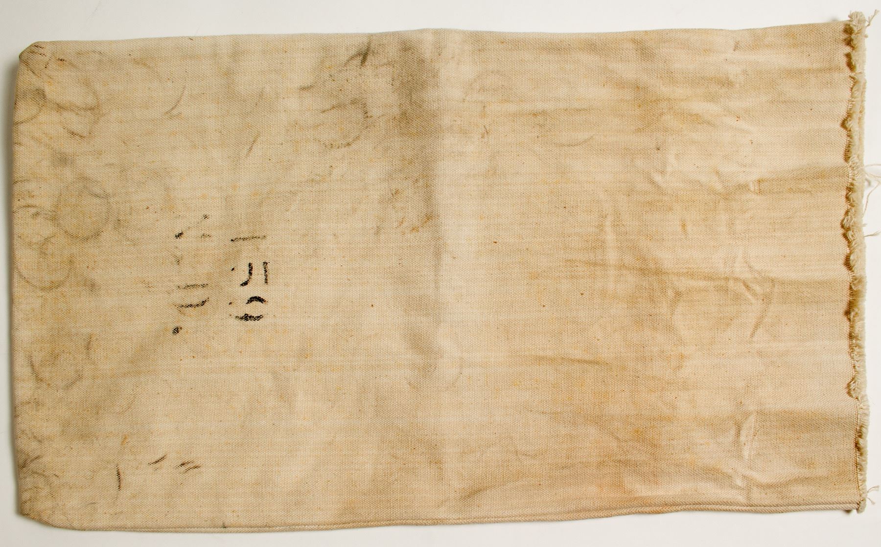 Classic thick canvas bag for 1000 silver dollars, marked "159 N. O." we assume this is New Orleans Mint silver dollar bag. It has impressions of the silver dollars throughout, as normal. State: Louisiana City: New Orleans HWAC#: 49141 Date: