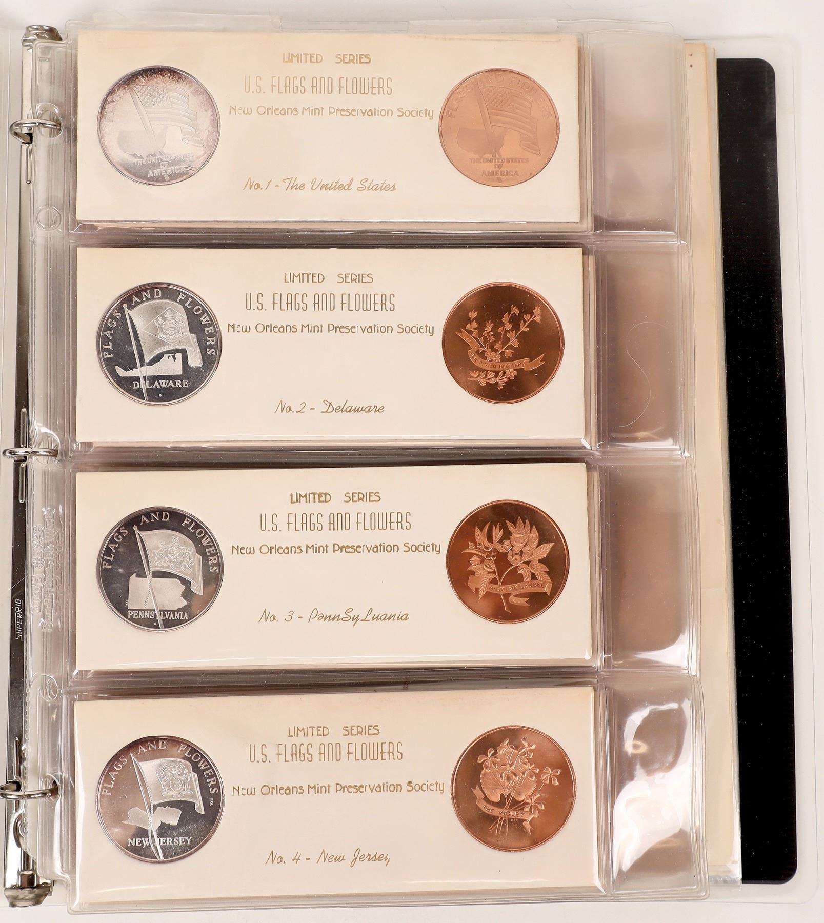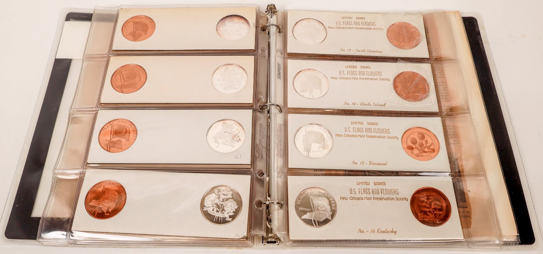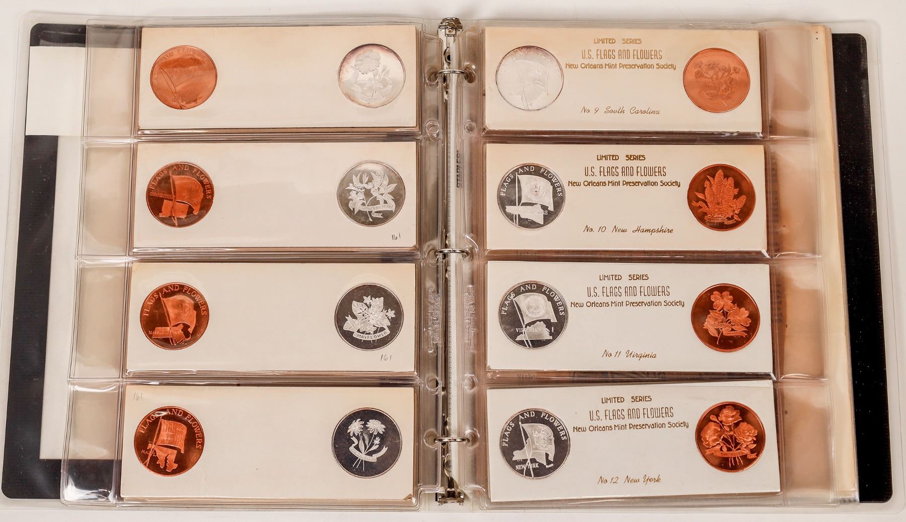 New Orleans Mint Flags and Flowers copper and silver medals, numbered by state 1-17. R300.