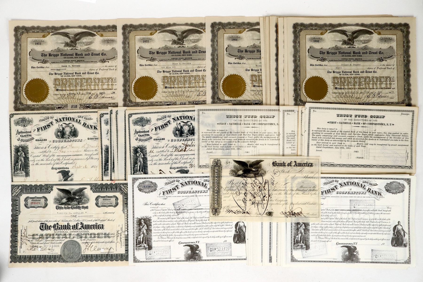 Lot of 109. I/C, U/C. First National Bank Cooperstown, The Briggs National Bank and Trust, Bank of America. Printers: American BNC, Dennison & Brown, Goes. Dennison & Sons.