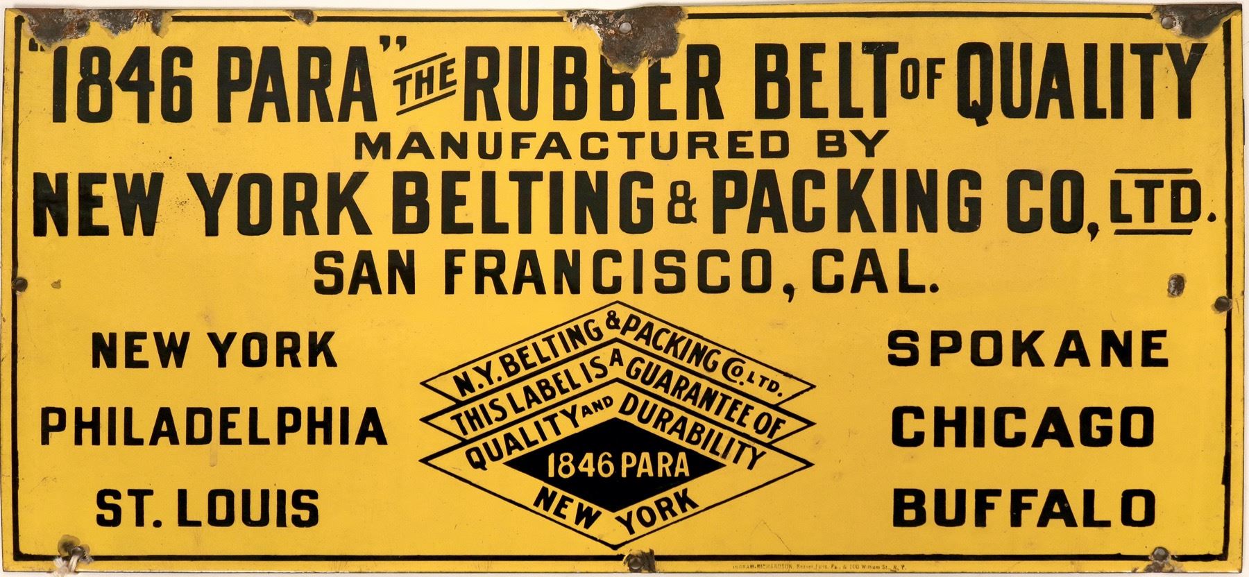 This is a beautiful porcelain advertising sign for The New York Belting & Packing Company. The signe measures 12"x 24" and is in nice condition, with some chipping around the screw holes. See photos more more deatils.