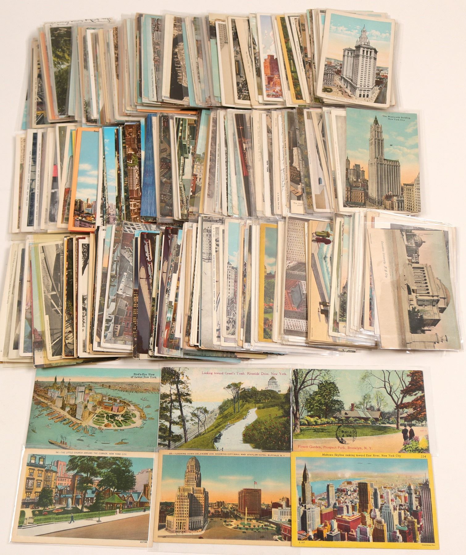 Approx 500 New York City postcards. Woolworth building, Flat Iron building, Grand Central Terminal, Coney Island, GWB, Empire State Building and many other landmarks. Many chromolitho, RPC's tooSalvatore Falcone Collection