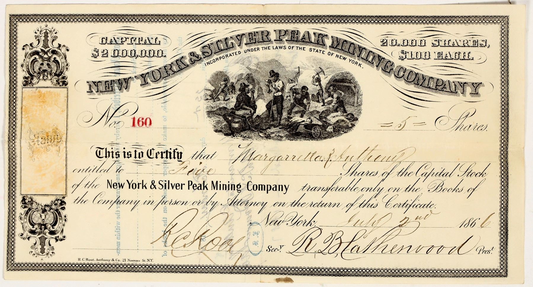 New York & Silver Peak Mining Company Stock Certificate, Silver Peak, NV 1866 [204197]