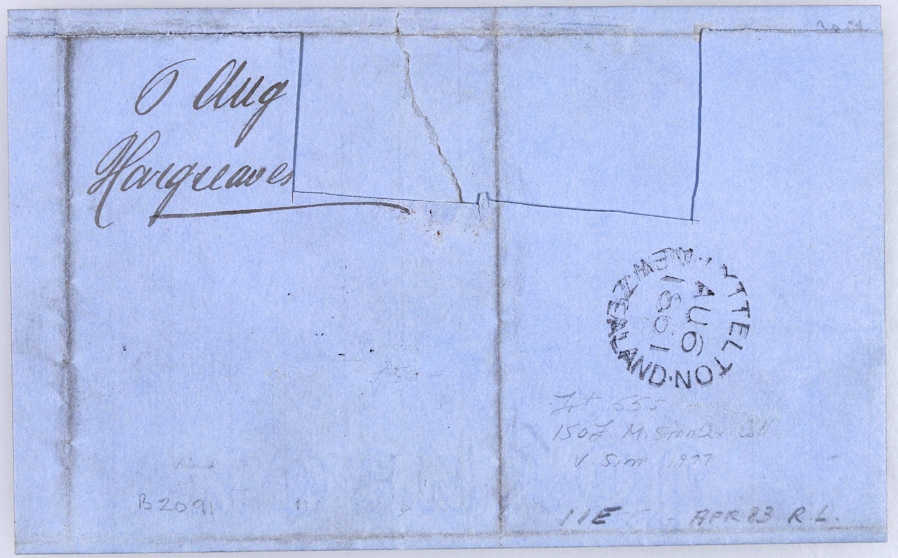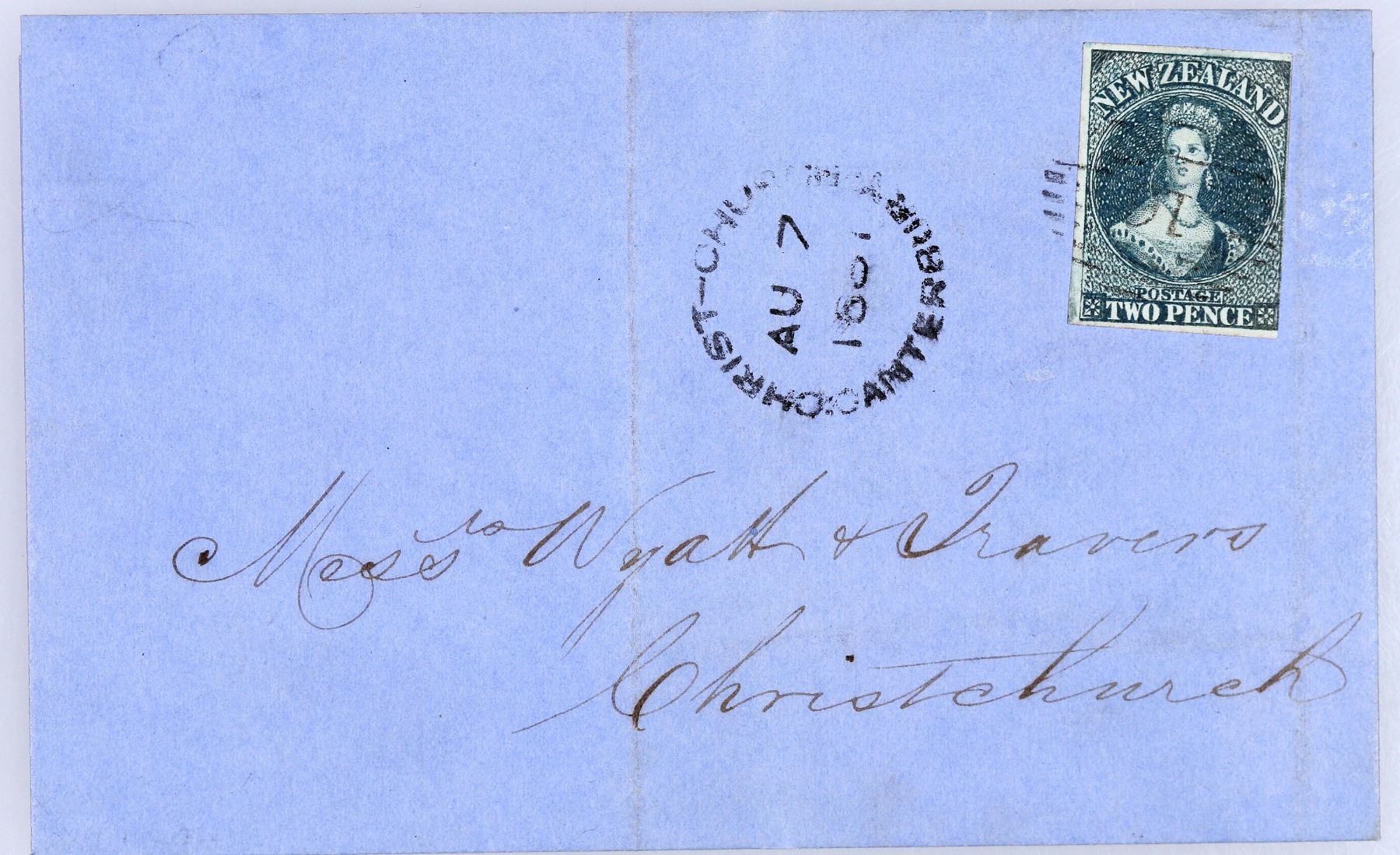 New Zealand 1861 lettersheet Port Victoria to Christchurch franked with 2p (margins good to just touching at right) tied by "16"killer of Port Victoria with Christchurch transit alongside, BPA certificate, pretty single franking.
