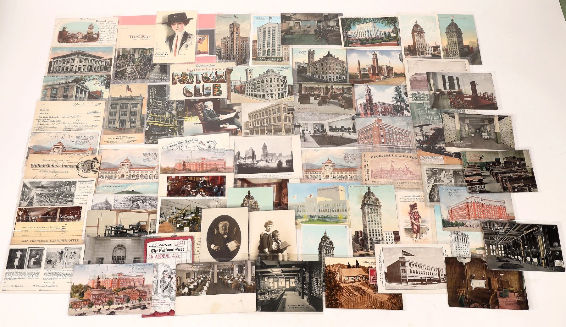 Views i.e; Newspaper bldgs, various presses, interiors of reporters desk, warehouse interiors, ad post cards, Library of Congress interior. Newspapers Include : The Dailey Times IA., San Francisco Call, The Times L.A.. The New York Times, The Los Angels Examiner, The Cincinnati Enquirer. 1902-38 Ken Prag Collection