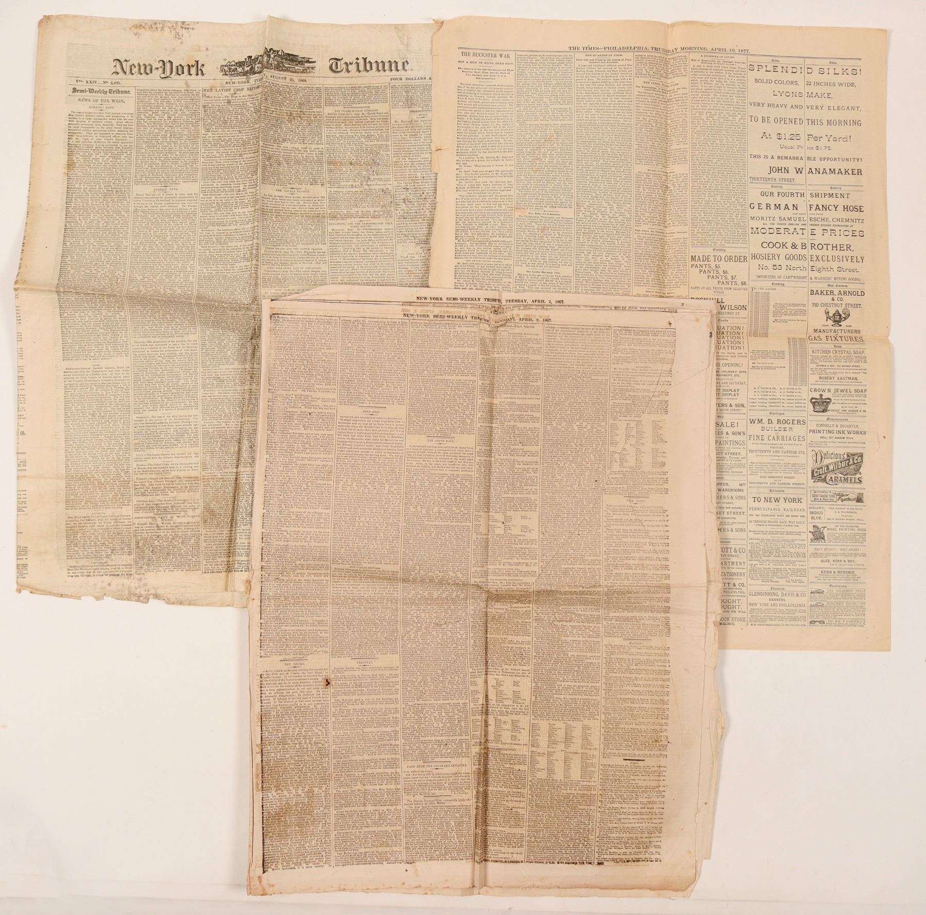 Item # 1 of 3: Very interesting article on baseball, and the New York clubs. Talks about baseball becoming the new " American Past Time", since the close of the war of rebellion !! And a lot of other things ( April 2, 1867 ). Item #2 of 3: Another article on base ball. 2 Championship teams, " The Unions " & " The Cincinnatis " , battling it out, and the Unions won again, their 20th victory!( August 25, 1868 ). Great reading. Item # 3 of 3: Fine piece about the new rules in baseball. No more " underhanded pitching , below the belt" ! If you do it three times, you for fit the game !( April 19, 1877 ). Plus more crazy stuff. These papers are a must read for baseball enthusiasts, and sports fans. Condition of the papers really good, considering their age !! Nice trio . ( RH).