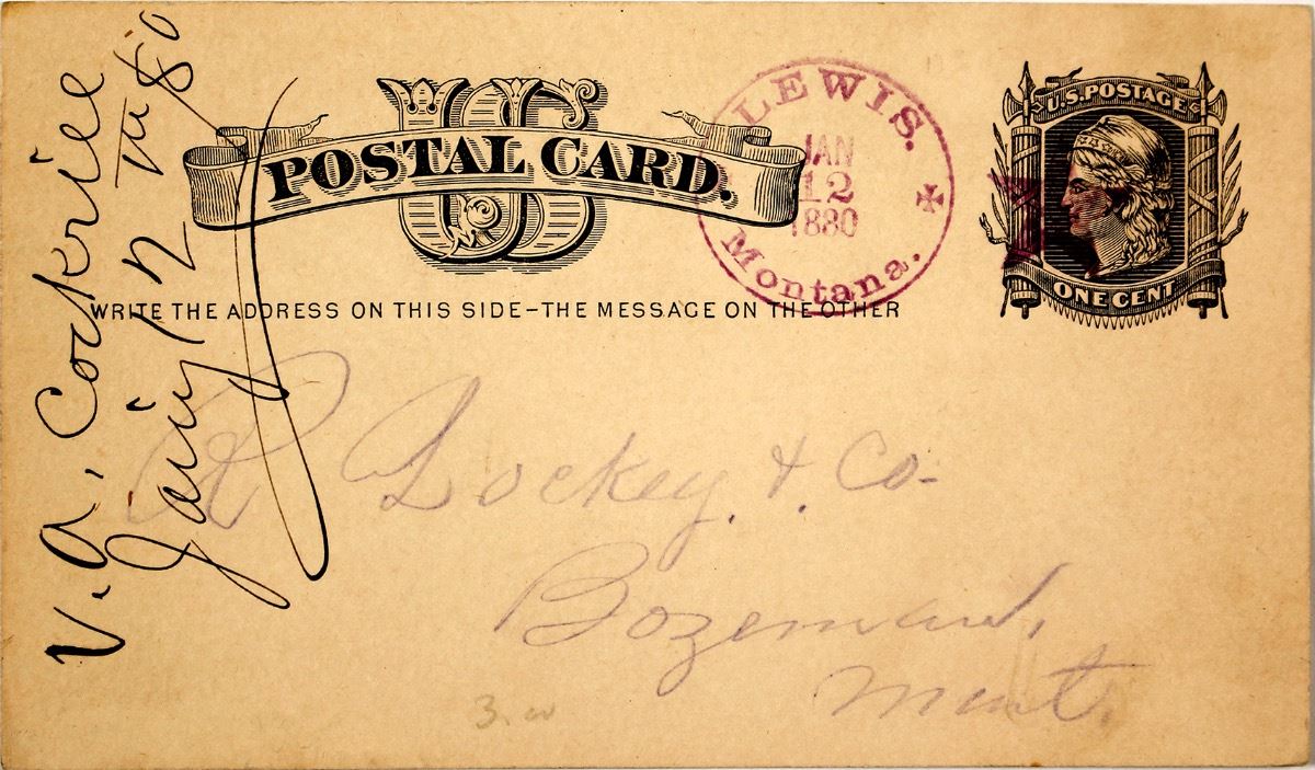 Strong strike with magenta star killer. From P. D. Haymend requesting nails be sent by return coach. City: Lewis State: Montana Date: 1880 ID: 36756