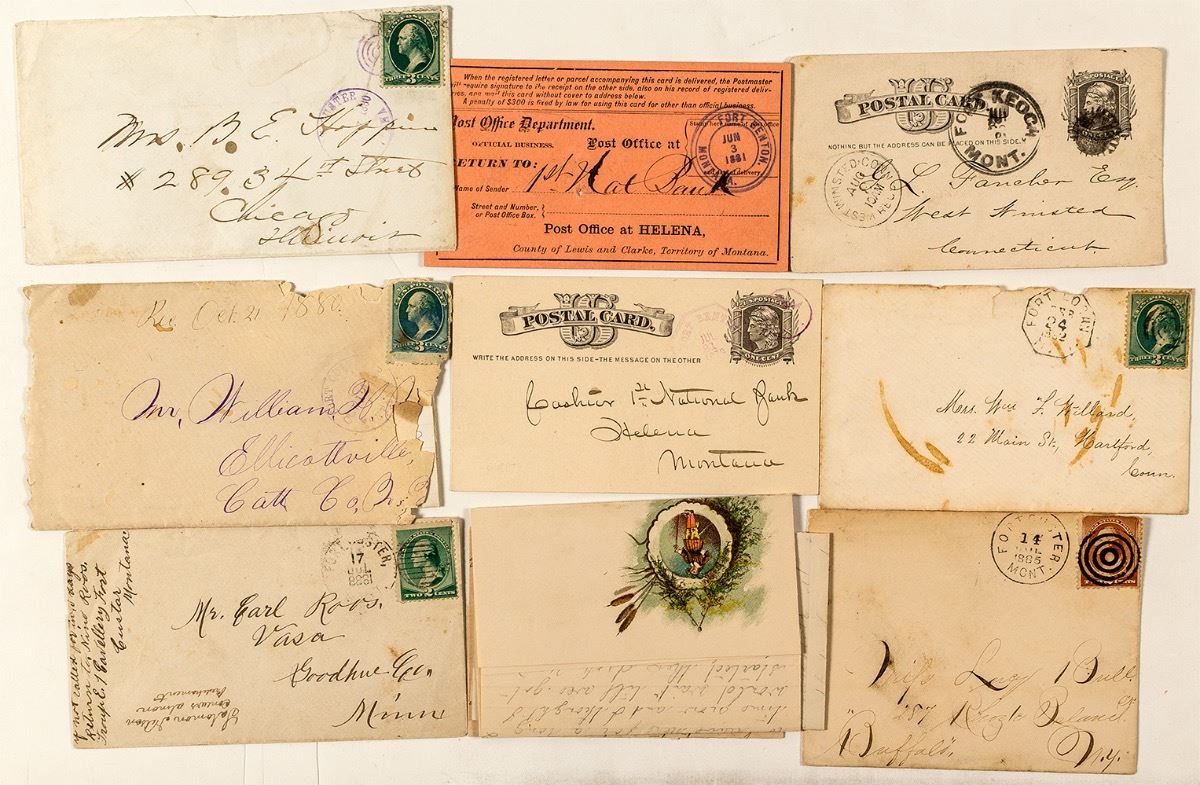 Eight total. Three with unread letters. Two Fort Benton: octagonal and double ring double circle. One Fort Logan octagonal. One Fort Keough double ring. Four Fort Custer including two early #2, one #4 with upside down year, and one 1885 target that seems to be unlisted. All with strong strikes! City: State: Montana Date: 1879-1888 ID: 36702
