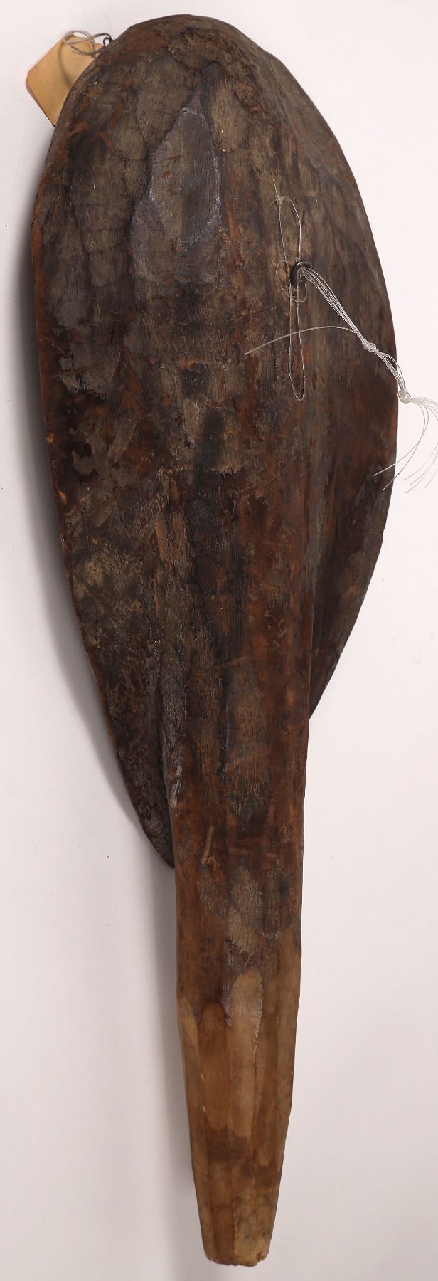This carved wood figure was of a celebrated figure-head in his community and used during the Yam Festival celebrated in late June throughout Nigeria, and often in surrounding countries as well. It is considered improper to eat yams ahead of the annual festival for fear of displeasing the gods and jeopardizing a successful harvest. This wood figure may have been accompanied by the mask listed elsewhere in this catalog. The figure stands 29 in. X 10 in. Please see photos for details.