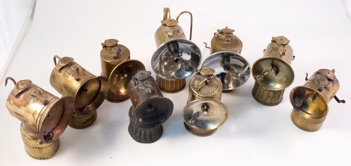 A collection of nine different Justrite lamps. All are different patented varieties from the early to the latest model. Numerous different reflectors. Condition is generally average. State: City: Date: FHWAC#: 42304