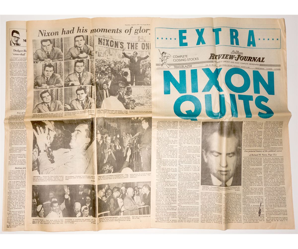 Newspaper, Las Vegas Review-Journal, Thursday, August 8, 1974, headline.