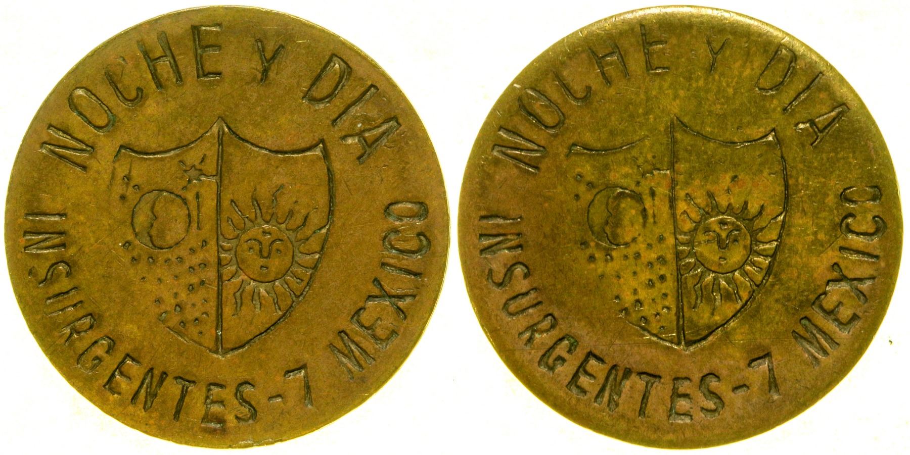 Noche Y Dia / Insurgentes - 7 Mexico; rev.: same. Br. rd., 21 mm.