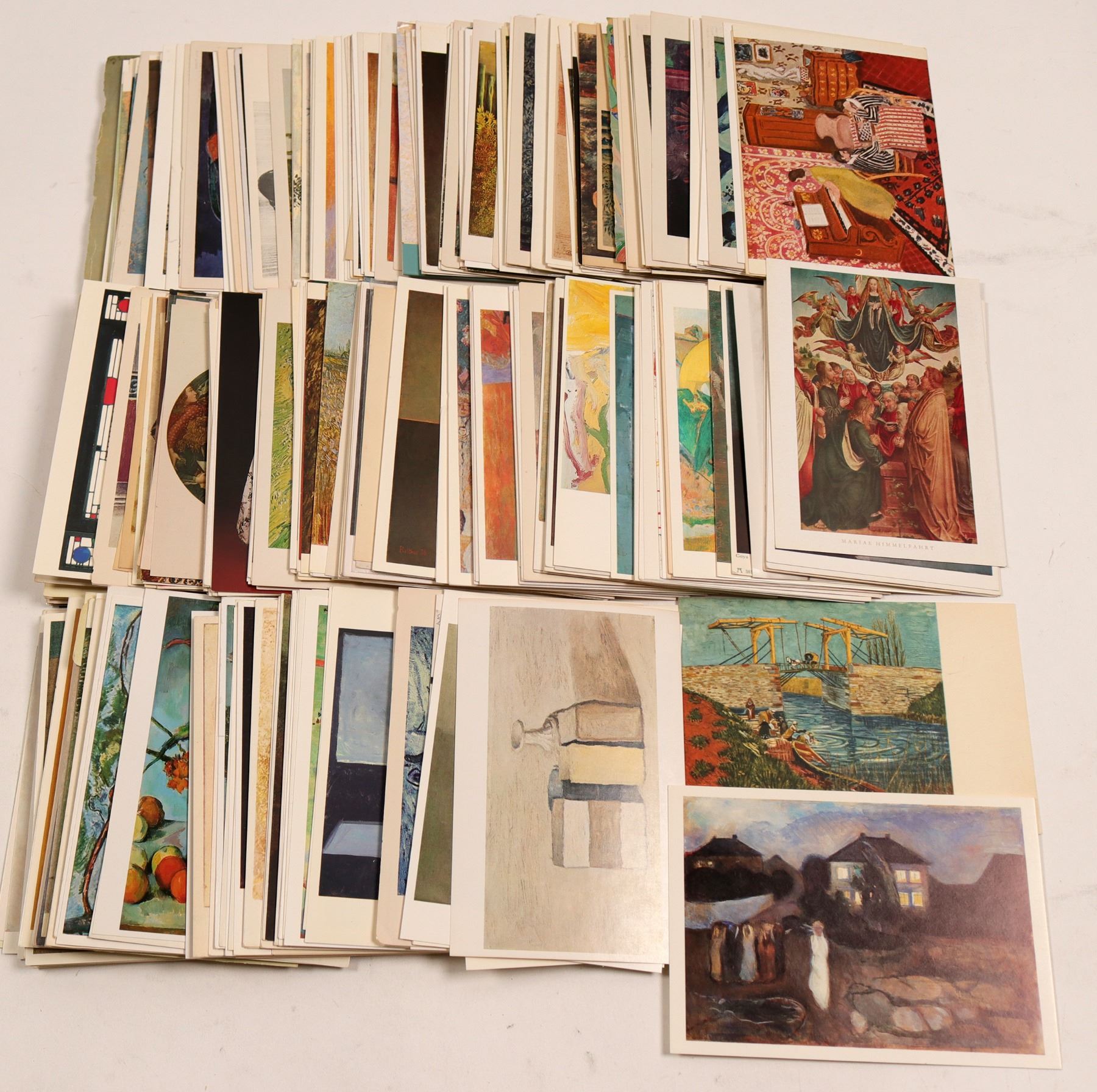 Over 400 non-western picture post cards with some duplicates. Includes artists from Van Gogh's "The Bridge," Paul Gaugin's "Sunflowers," and A. Modigliani's "Chaim Soutine."Good condition. Pictures of scenery, bodies of water, flowers and portraits. Photographs of artist's paintings. Brian Thaler Collection
