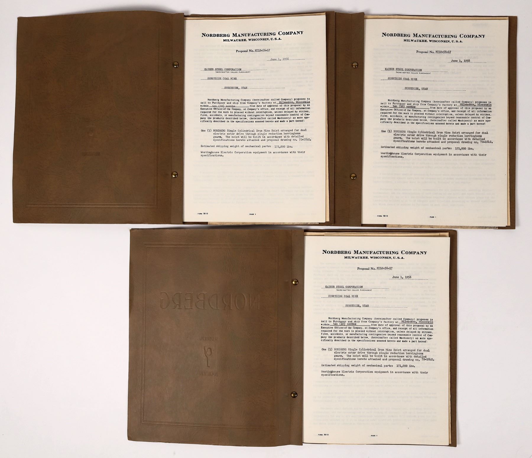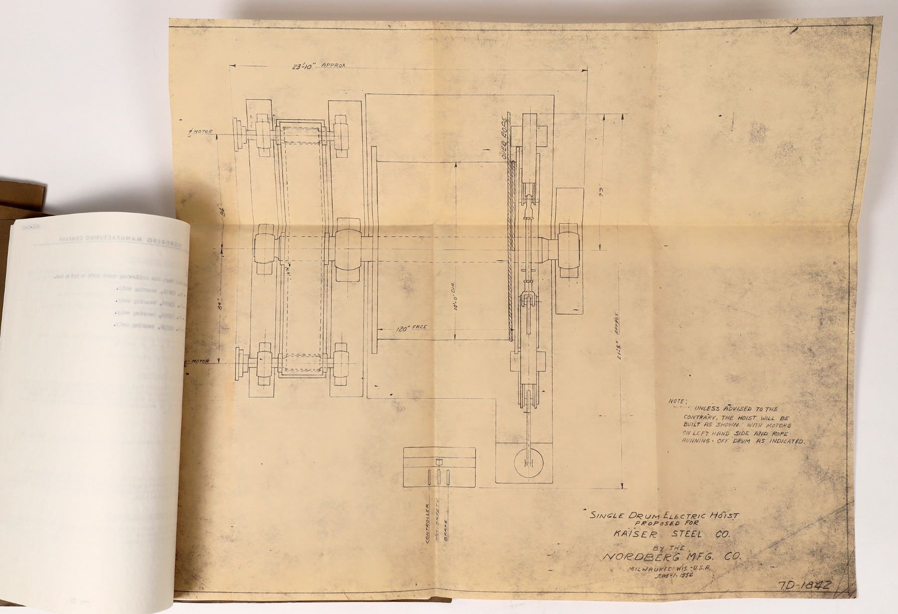 Proposal from the Norberg Company through Kaiser Steel for a Cylindrical Drum Mine Hoist for the Sunnyside Mine. Estimated shipping weight 171,000 pounds! All for $183,185! Detailed description of operative conditions and date for the hoist. Includes directions for use and a 2+ page diagram of the Hoist (perfect condition). Much more information! Three copies included.