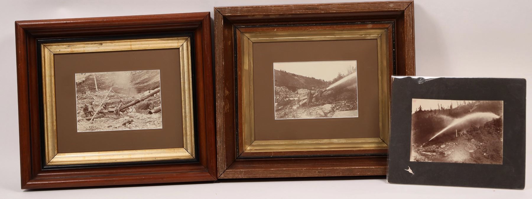 Three original photographs of hydraulic mining operations in California, c. 1905-1915.
