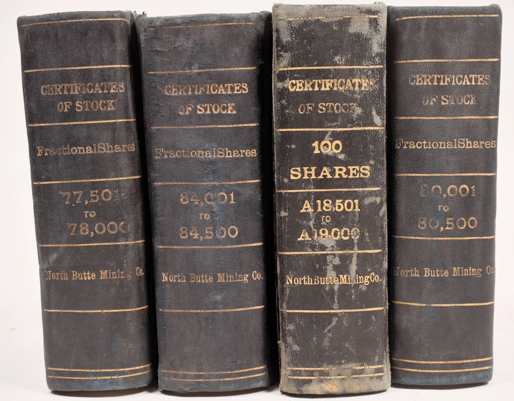 4 North Butte Mining stock certificate books, 18,501-19,000. 77,501-78,000. 80,001-80,500. 84,001-84,500.