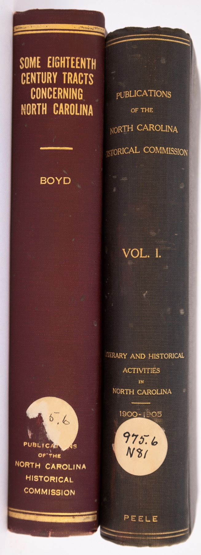 Some Eighteenth Century Tracts Concerning North Carolina by Boyd, Publications Of the North Carolina Historical Commission Vol. 1 1900-05. Sir Walter Raleigh and His Colonies, The Battle of Moore's Creek Bridge, Colonial Dames of America. State:North Carolina City: Date: Provenance: Stuart MacKenzie Montana Collection