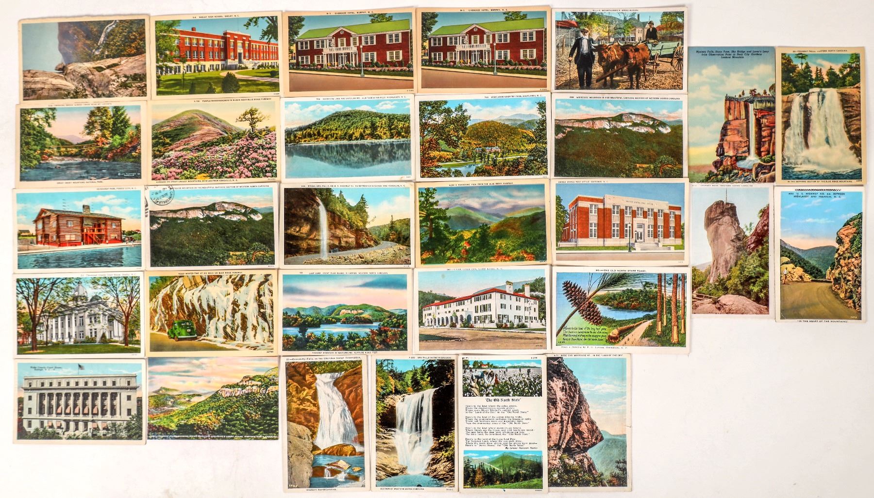 Lot of 29. Mostly wht. border linen era, some by Curteich. Post marks i.e; Murphy N.C., Highlands N.C., Raleigh, Staunton VA. Gastonia N.C. . Street level view i.e.; Nose End Mt, several famous waterfalls, Old North Estate, Chimney Rock and more. North Carolina 1930-45 Ken Prag Collection