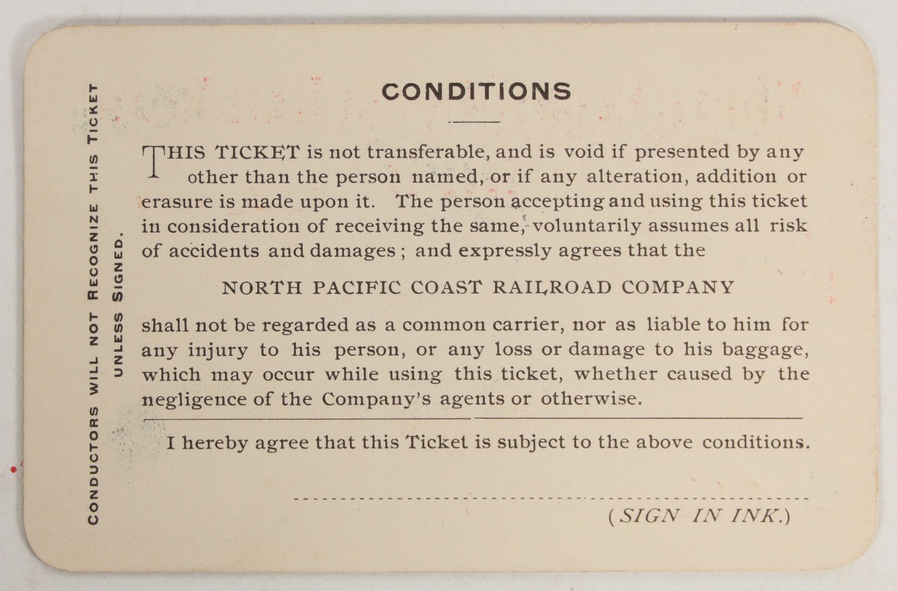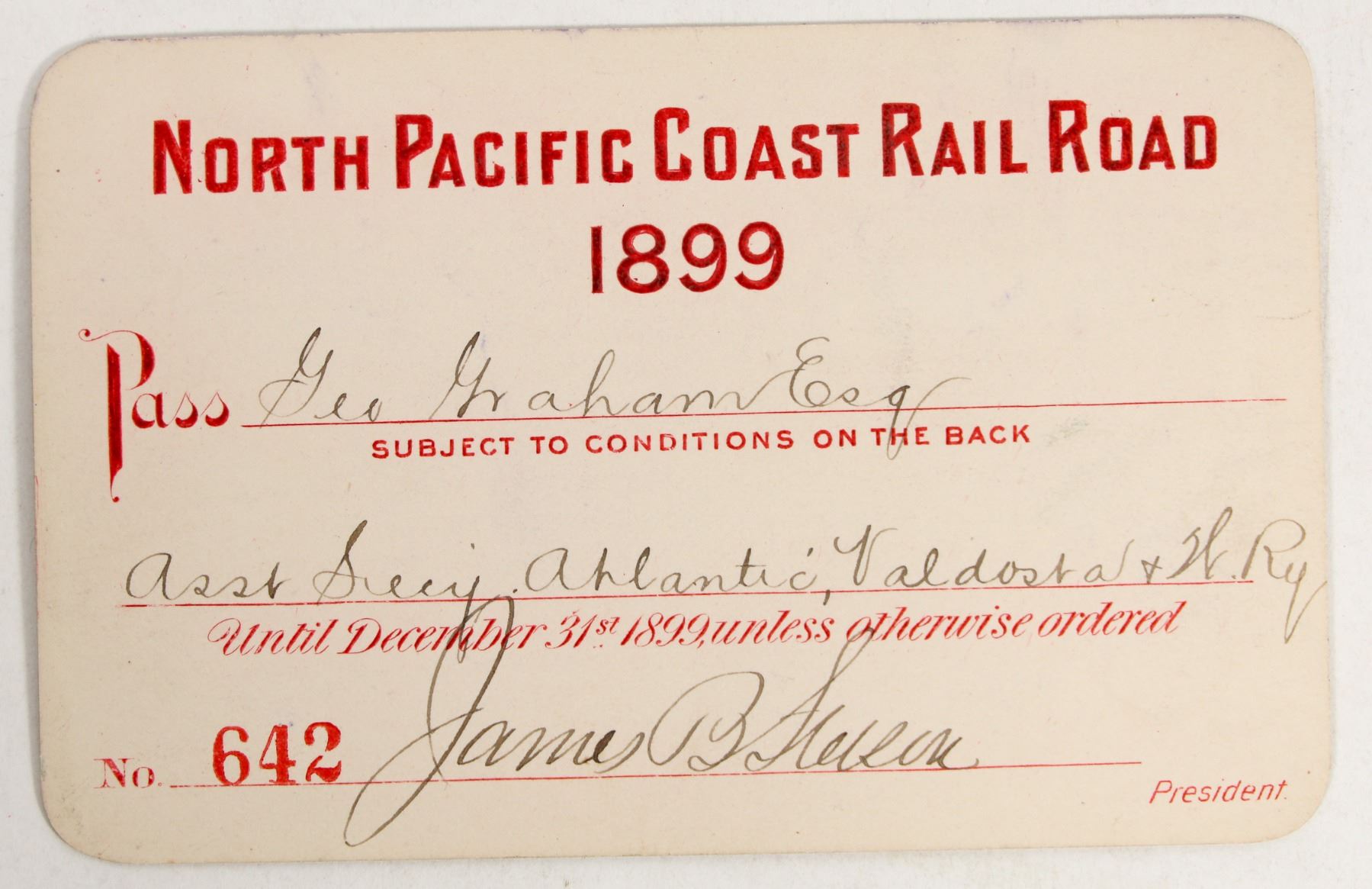 1899, #642 North Pacific Coast Rail Road pass. Excellent cond. The NPC operated in the northern California counties of Marin and Sonoma that carried redwood lumber, local dairy and agricultural products, express and passengers.