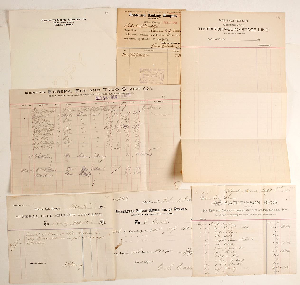 Tuscarora-Elko Stage Line, Mineral Hill Milling, Kennecott Copper, Manhattan Silver Mining, Mathewson Bros and more Date: c. 1871-1907 Location: Nevada HWAC# 64350