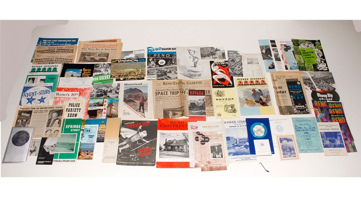 This lot has a little something for everyone: pamphlets, brochures, programs, ads, post cards, informational brochures, newspaper, baseball, tax lists, booklets, and Sheep Dip! Please see photograph for samples and inspect the lot for a complete list. Date: c1970 NV hwac 20081