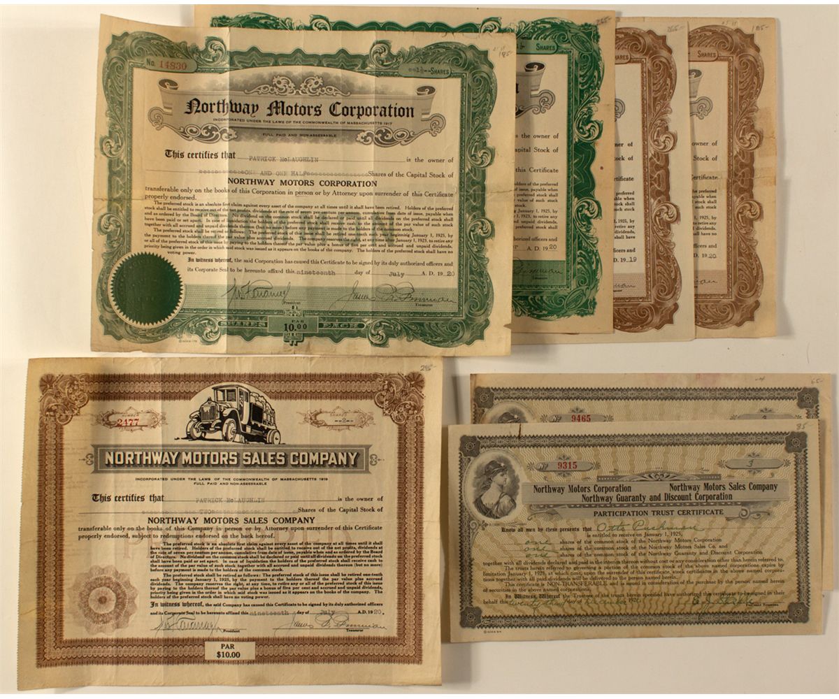 Northway Motors Corporation, 7 separate certs. Prag Collection