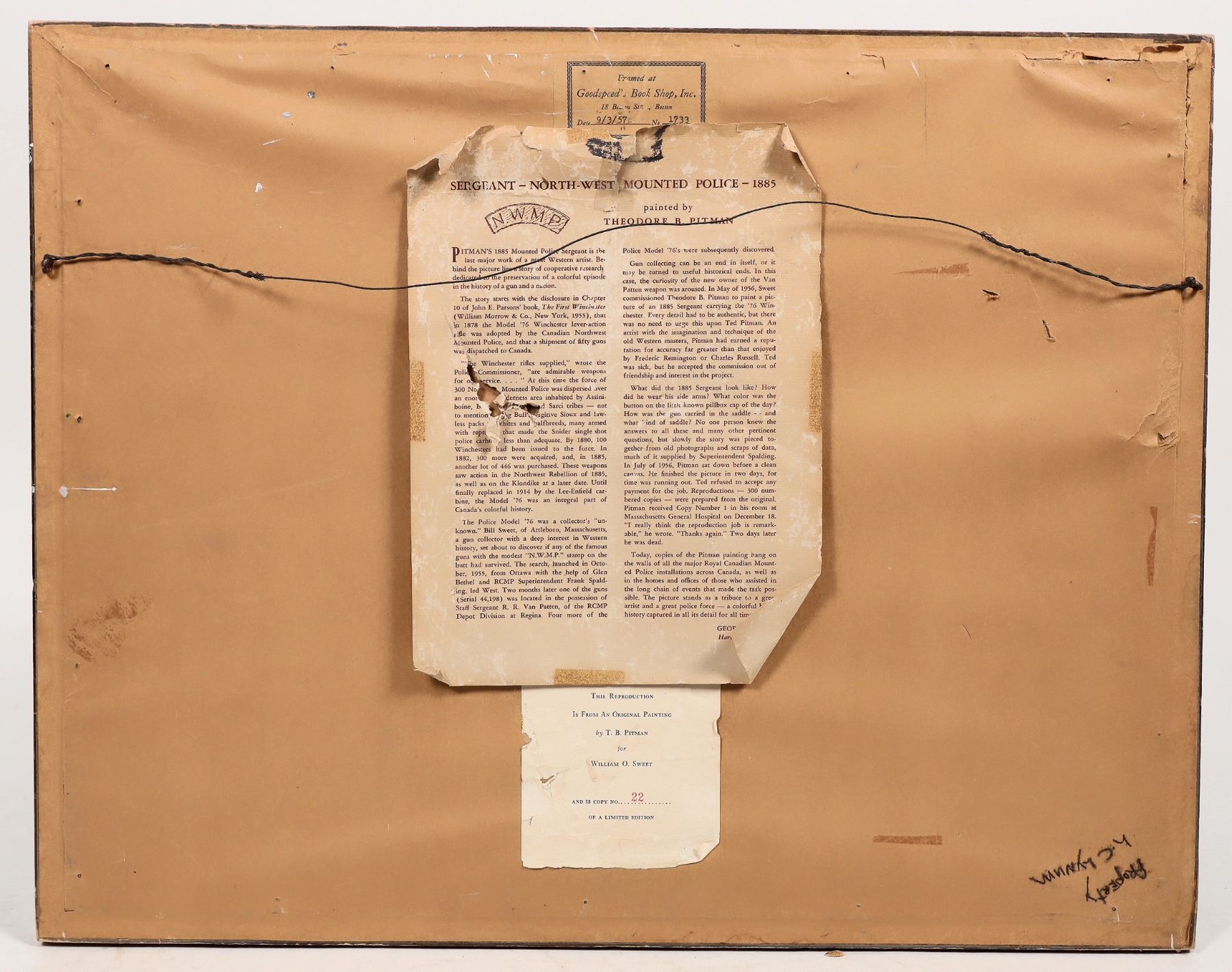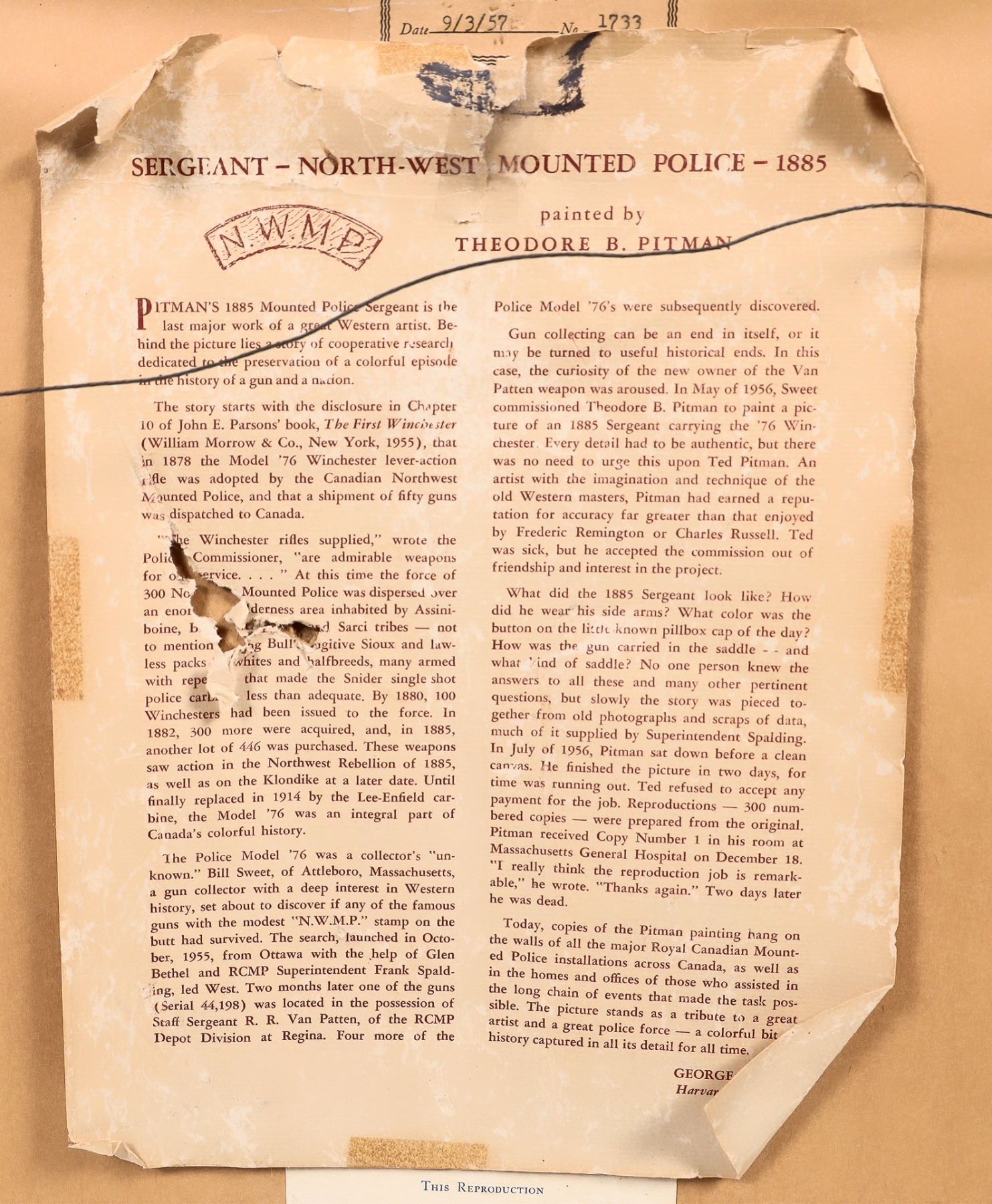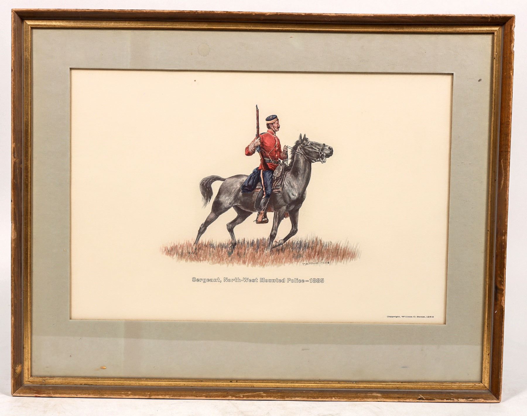 Print of Northwest Mountie, dated 1958, with a copyright of William O. Sweet. Framed and matted print measures 18"x 24" and is in nice condition. Please see photos for more details.