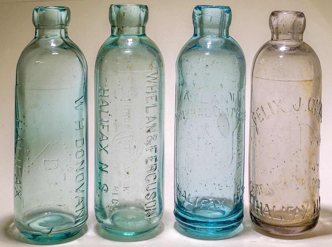Nova Scotia. Four different Nova Scotia Hutch soda bottle sodas. We learn and Ferguson, Halifax. Atlantic mineral water Halifax. Donovan Halifax. Quinn Halifax. The Atlantic has a lip chip the others appear near mint except the Quinn which has a check in the side. All but the Quinn are aqua. HWAC# 47026 Date: Location: zCanada