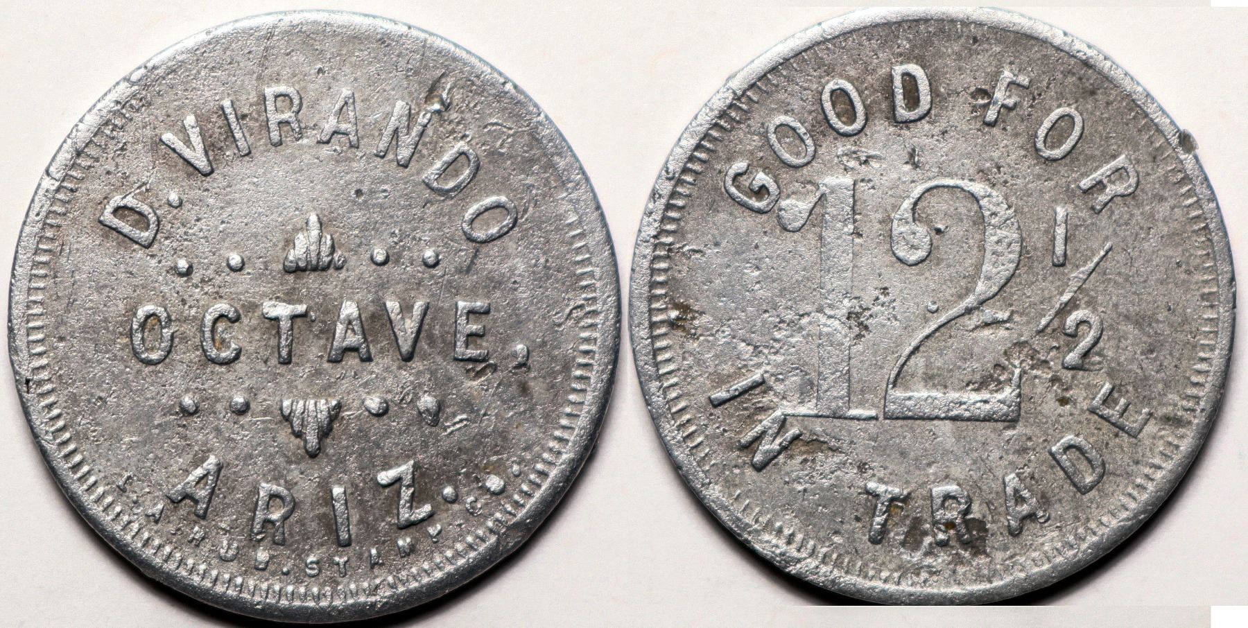 D. Virando / Octave, / Ariz. // GF / 12.5c / IT. Round, Al., 9mm. R-6. LA Rubber Stamp Co.