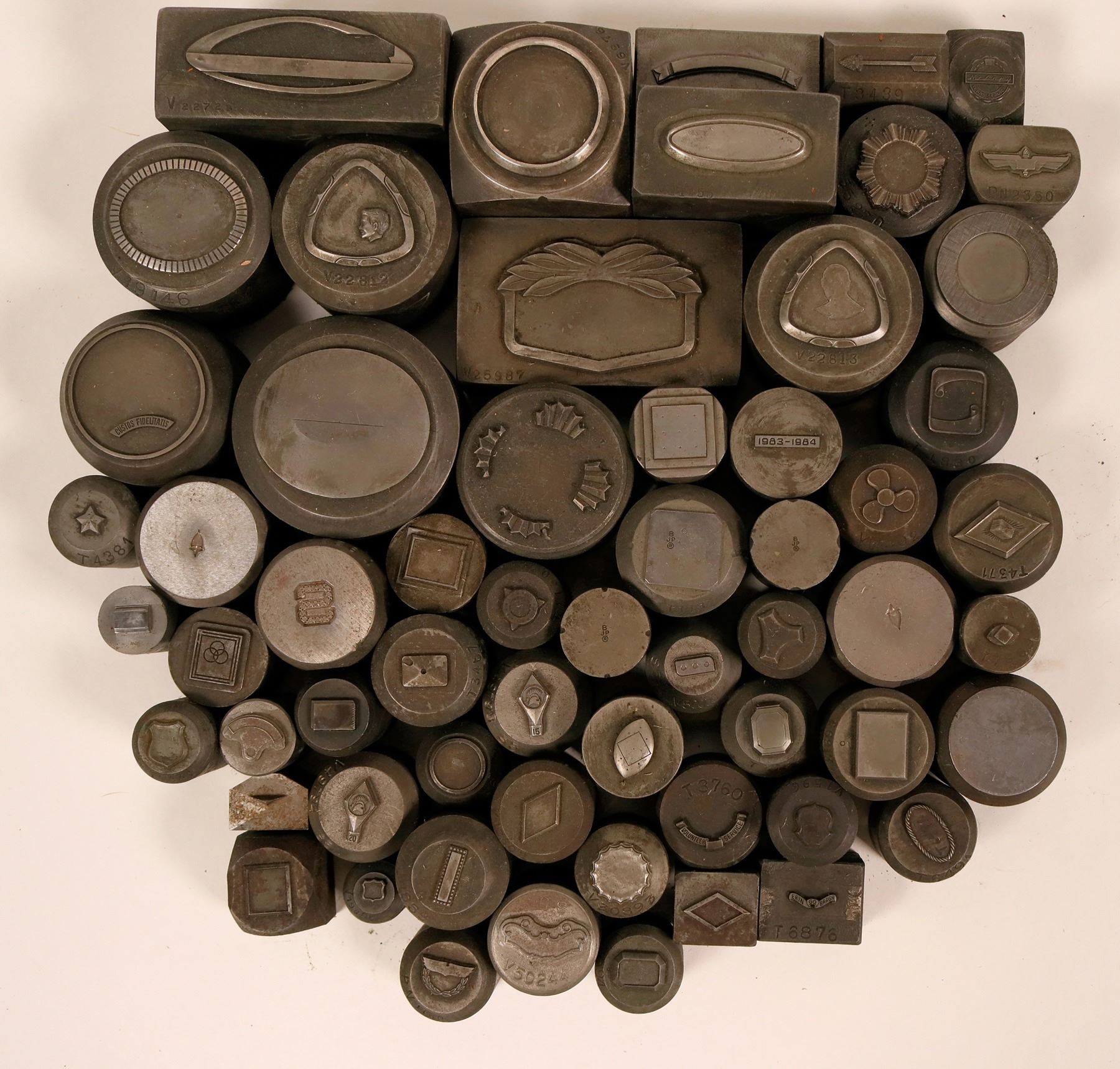 Grab bag lot. This grab bag includes various shaped and sized Dies and Hobbes. Some dies and hobbes include: Number 8, fan, diamond, arrow. These come from the NWT Mint Historical Die Collection.