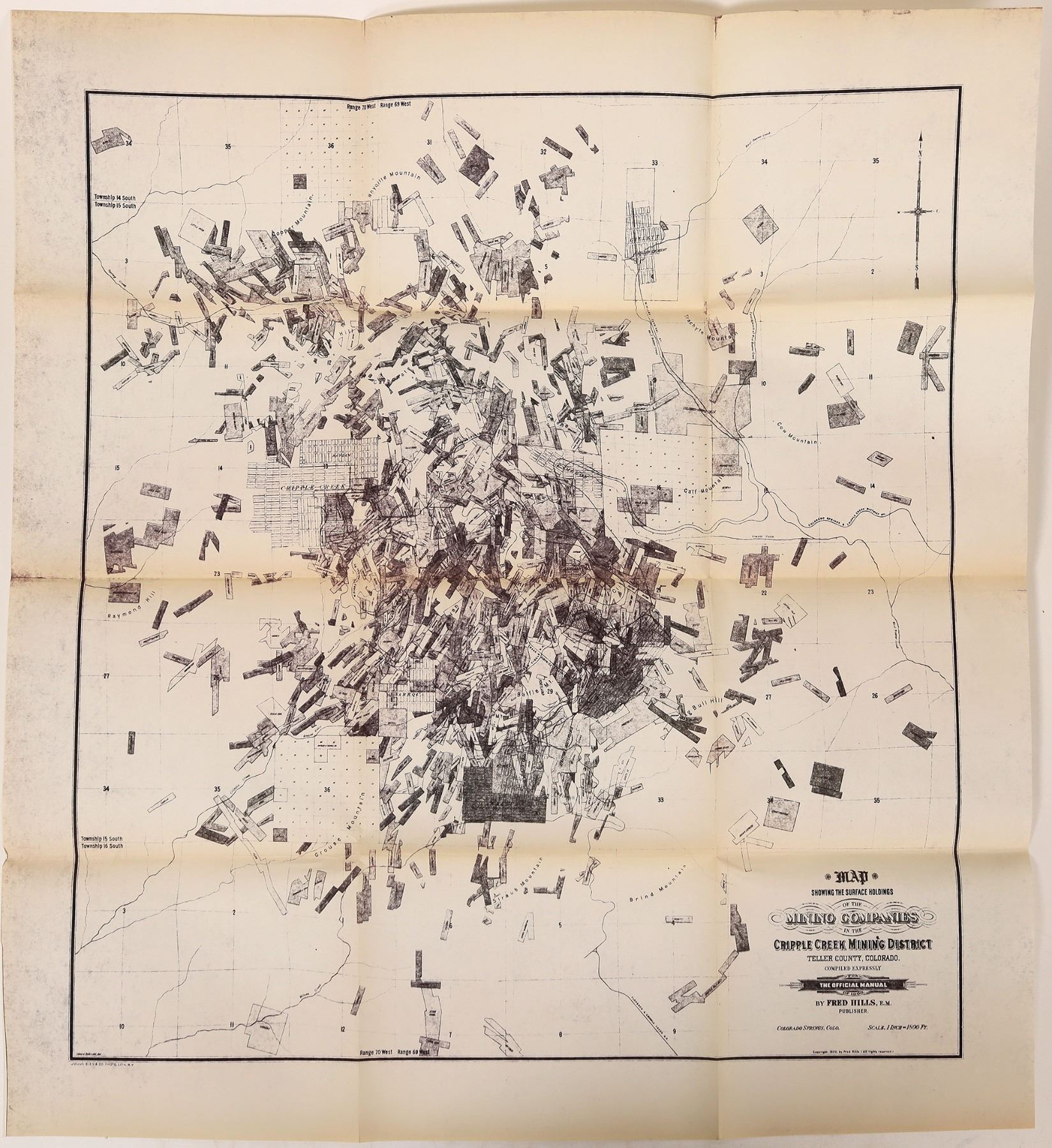 First edition. Very scarce. Only one copy with map has sold at auction in the last thirty-five years. Includes two articles: ìThe Cripple Creek District, Its Past and Future by T. A. Rickard, and ìCripple Creek from the Standpoint of Statistics by George Rex Buckman. Provides date of incorporation, address of the main office, capitalization, property, development, and production, as well as maps of the property for approximately 400 different mines. The full-page views include City of Cripple Creek; Town of Goldfield; City of Victor; The Portland Mine; Bull Cliffs; Strattons Independence Mine; Town of Altman; Raven Hill; and Town of Anaconda. The index to the companies represented is particularly useful and is organized alphabetically. The single-page map is entitled, ìGeological Map of the Cripple Creek Mining District, Teller County, Colorado and was produced specifically for this work. See other great mining references in the mining section of this sale. Cripple Creek Colorado 1900