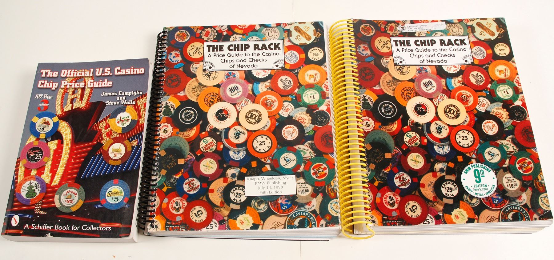 1 paperback, U.S. Chip Casino Chip Price Guide, by James Campiglia & Steve Wells pp. 399; 2 spiral bound books The Chip Rack/A Price Guide to the Casino Chips and Checks of Nevada approx. pp.490. Date: 1998 Location: Nevada HWAC# 64245